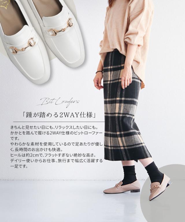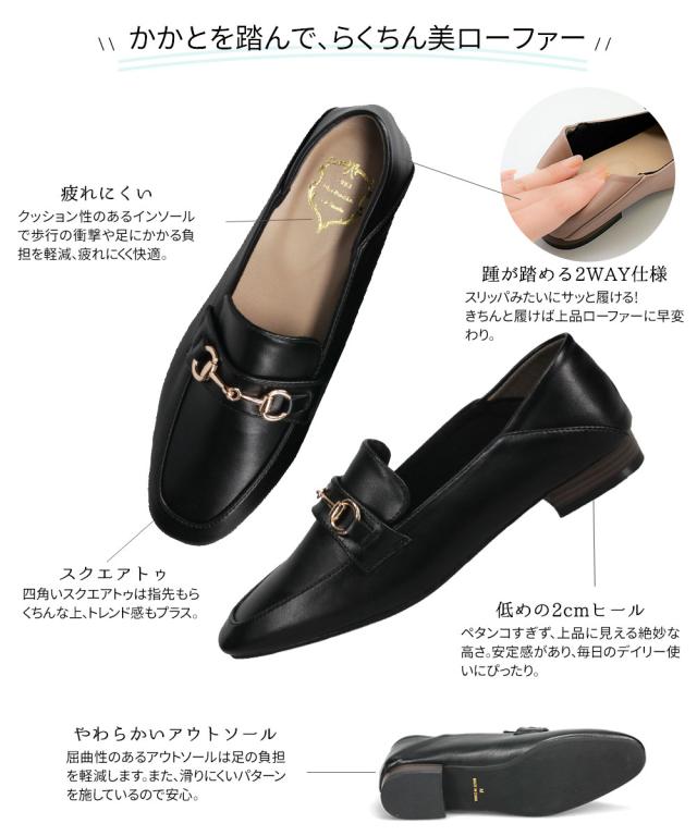 ローファー レディース 大人 痛くない かかとが踏める 2way ローヒール 婦人靴 スクエアトゥ ビットローファー バレエシューズ フラットシューズ レディース 歩きやすい 黒 コンフォートシューズ ローファーパンプス 2cm ローヒール ブラック ホワイト 白 209