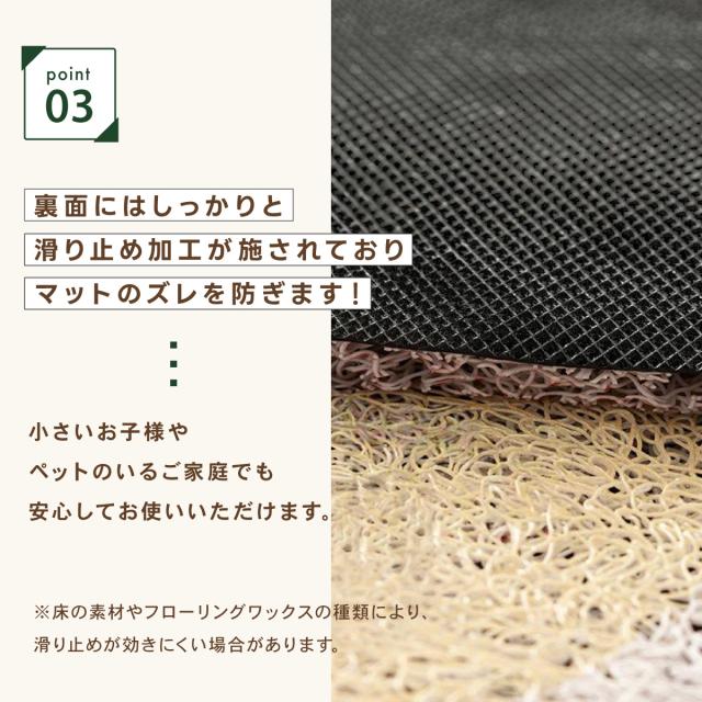 裏面にはしっかりと滑り止め加工が施されており、マットのズレを防ぎます!