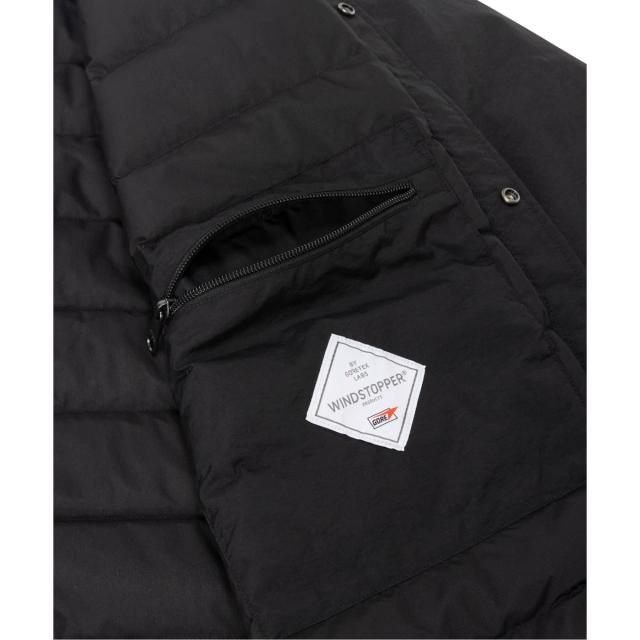 表地にははっ水加工を施した、軽くナチュラルな風合いのリサイクルタスランナイロンを使用しています。マットな質感の生地にパッカリングを効かせてスポーティ感を抑え、都市生活に馴染むデザイン感。中わたは、遠赤外線効果で自然なあたたかさをもたらすクリーンダウン光電子を封入。裏地にGORE−TEX WINDSTOPPER 2層構造を使用し、風の侵入を軽減しています。袖と裾は適度なフィット感のゴム仕様。