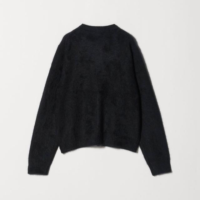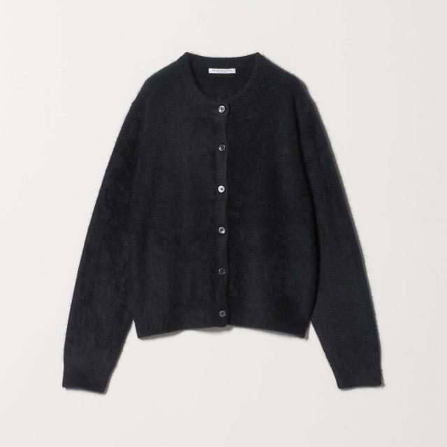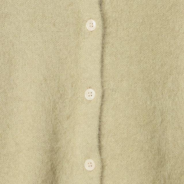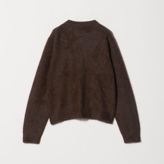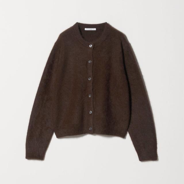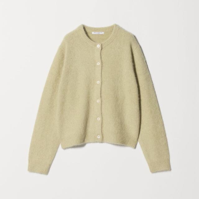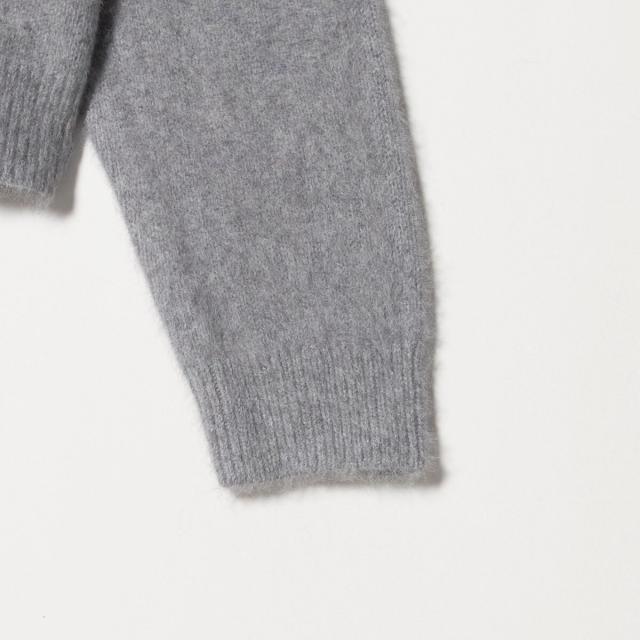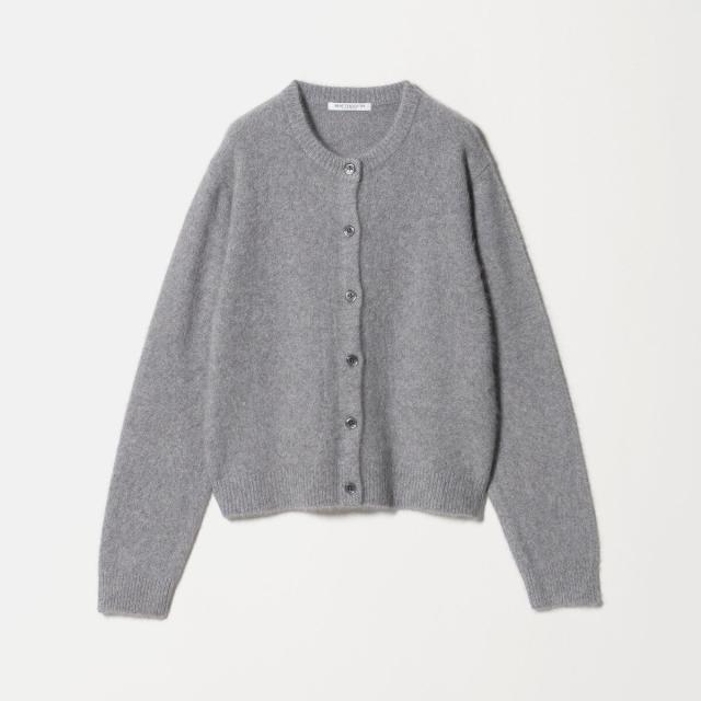 フォックスカシミヤのやさしい毛足の素材感が着こなしのアクセントになるクルーネックカーディガン。
