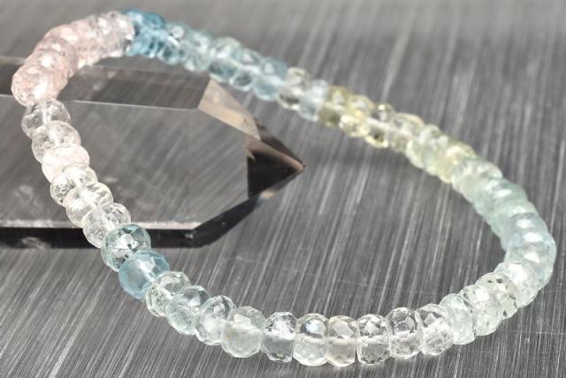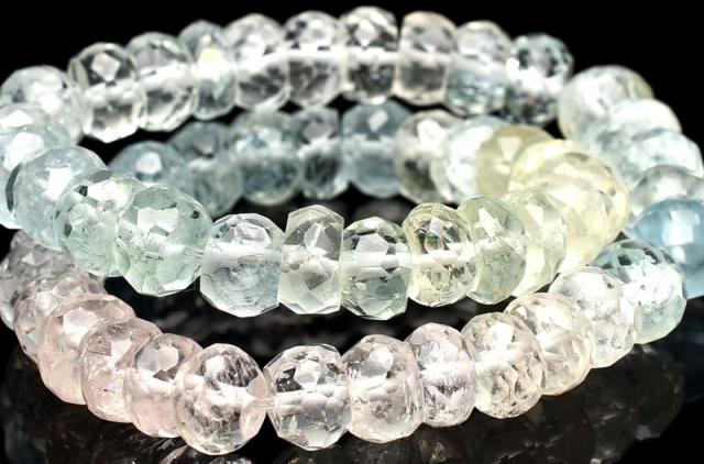 | 特徴・意味 | 透明度の高いベリルを思う存分楽しめる贅沢なタイプです。 キューブ型の面にカット加工を施し、よりキラキラと美しく輝くようになっています。 パーティーなどにも使って頂ける素敵なブレスレットです。 ベリルは、緑柱石をあらわすグループの総称。含まれる鉱物によって発色が異なり、それぞれ違った名前を持っています。中でも鉄分を含んで青くなったものはアクアマリン、クロムの作用によって緑色になったものはエメラルド、マンガンを含んでピンク色になったものはモルガナイトと呼ばれています。 ベリルのうち、透明度の高いものは希少価値がとても高く、宝石としても扱われます。古代クレオパトラの時代にも、装飾品として愛用されていたことが伝えられており、人気の高いパワーストーンの一つです。 ヒーリング作用が強く、心を癒して持ち主に富と名誉をもたらすと伝えられる「ベリル」。アクアマリンやエメラルドの他、ピンク色のモルガナイトや黄色のゴールデンベリルなど、さまざまな鉱物が含まれており、それらがすべてベリルと呼ばれています。 |