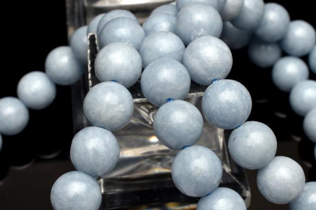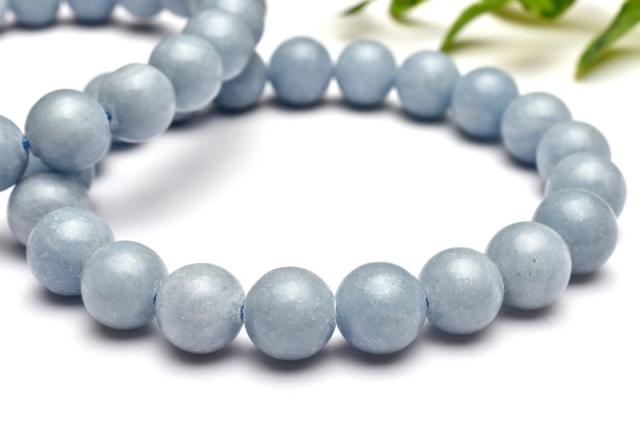 | 特徴・意味 | 淡いブルーカラーが人気のエンジェライトのブレスレットです。 フロスト加工がマットな印象です。 エンジェライトは「アンハイドライト(硬石膏)」という鉱物の一種で、セレスタイトと同種になります。 ストロンチウムを含有するアンハイドライトは、色が淡い水色になり「エンジェライト」となります。 |