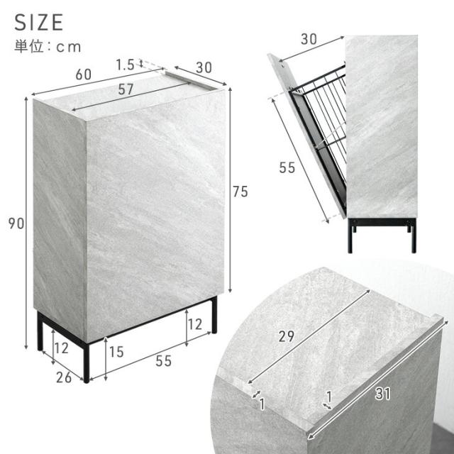魅せる ごみ箱 石目調 90L 隠せる 目隠し ゴミ箱 ダストボックス 分別ゴミ箱 分類ゴミ箱 ペールストッカー ペールストッカー 4分別 分別 ゴミ袋 90リットル 90l 四角 スリム リビング キッチン 一人暮らし 石目柄 ストーン調 おしゃれ