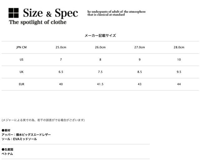 アッパーは撥水加工を施したピッグスエードレザーを使用。