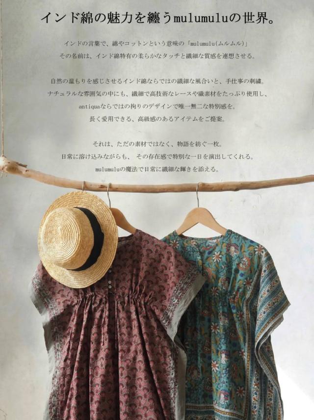 インドの伝統を感じる繊細な風合い、手仕事の刺繍にフォーカスを当てたantiqua発のブランド『mulumulu(ムルムル)』