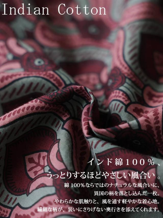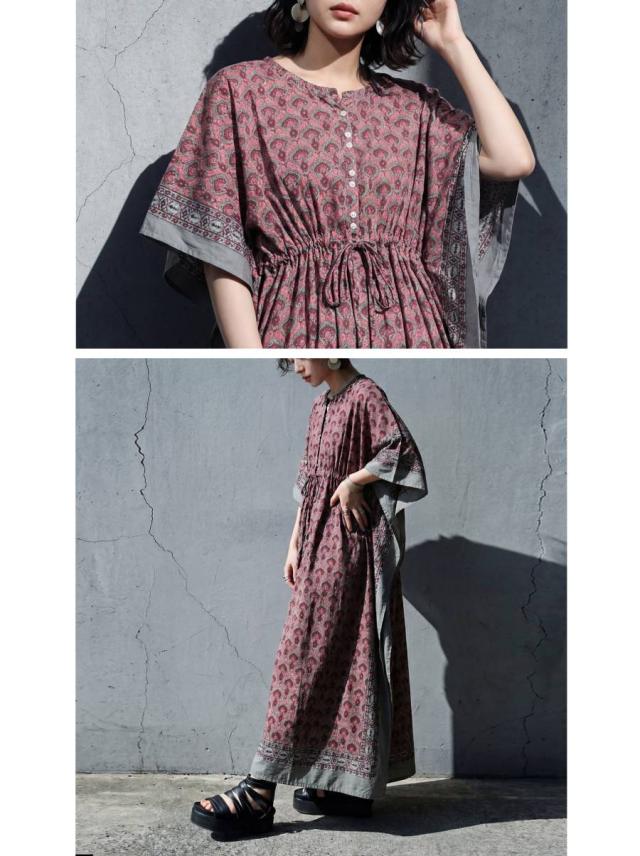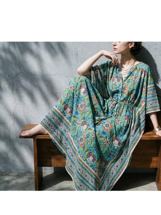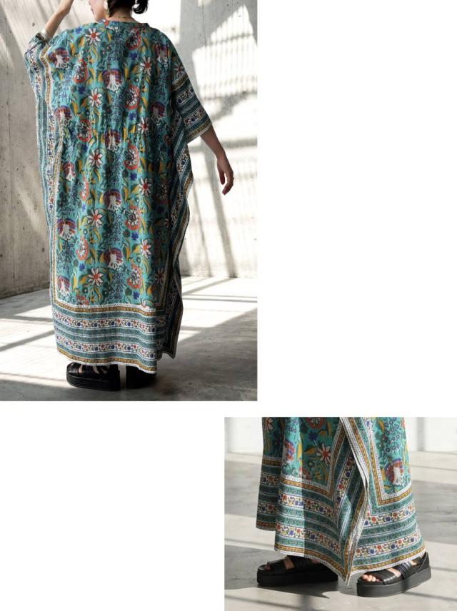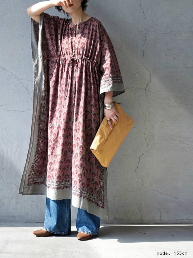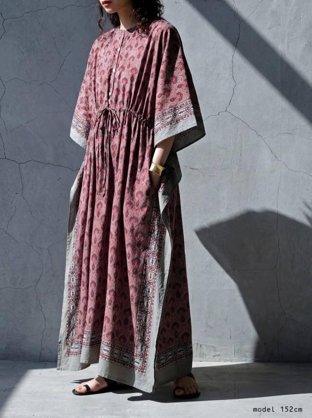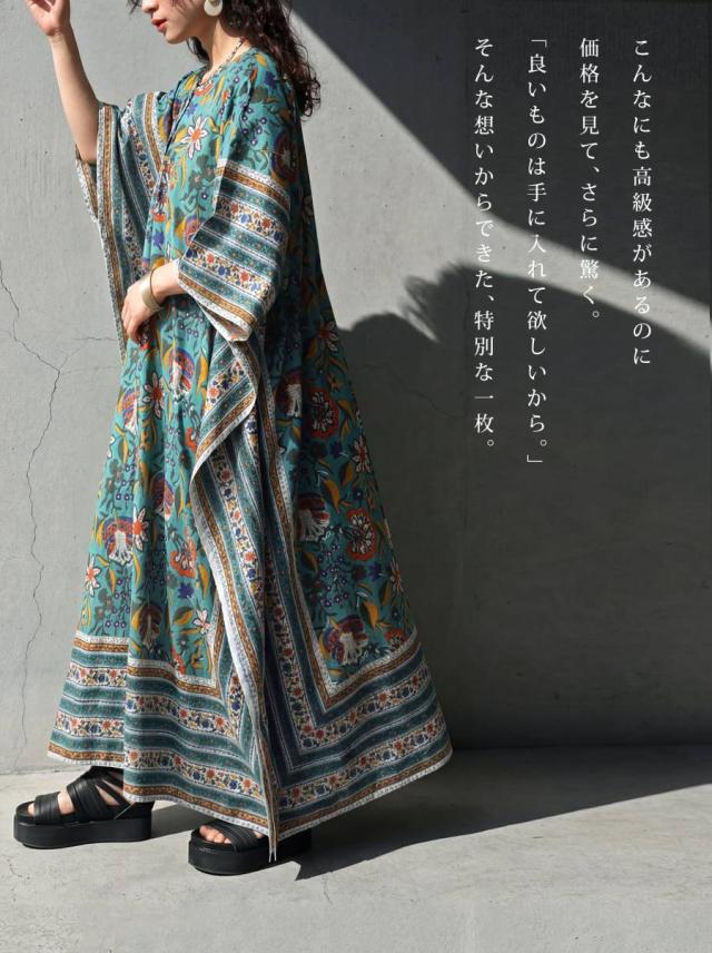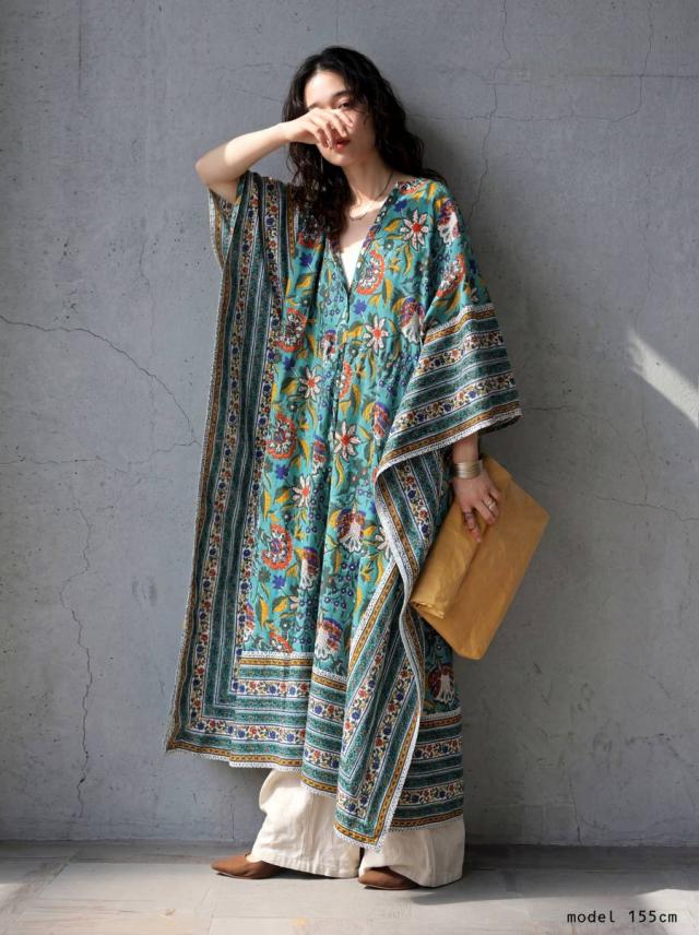 インド綿100%(綿100・コットン・インディアンコットン)のやわらかな風合いが魅力のカフタンワンピースです。