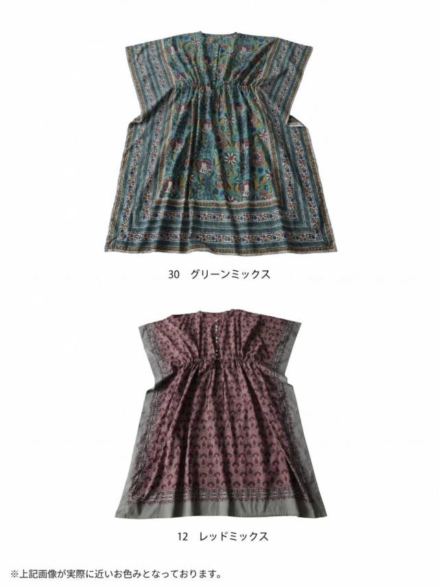 インド綿 カフタンワンピース レディース 半袖 送料無料・(100)メール便可 春新作