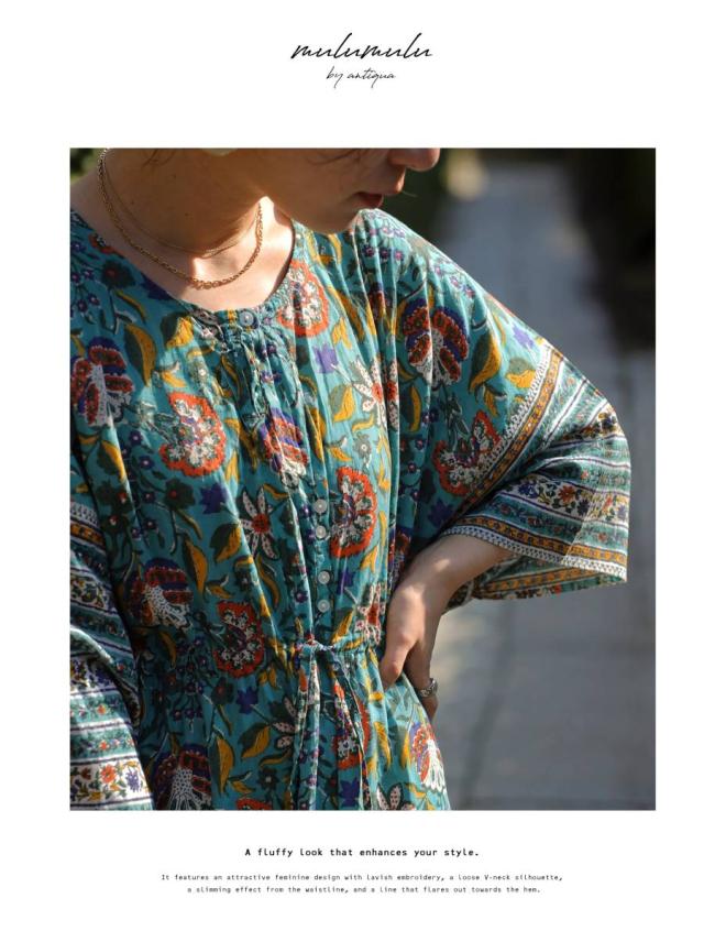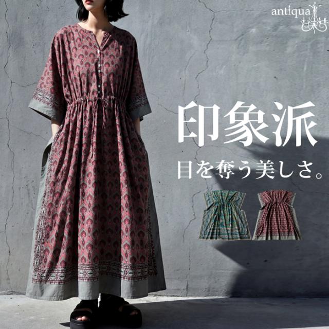 エスニックやアジアンテイストな空気感が漂い、一枚で存在感のある柄ワンピに仕上げました。