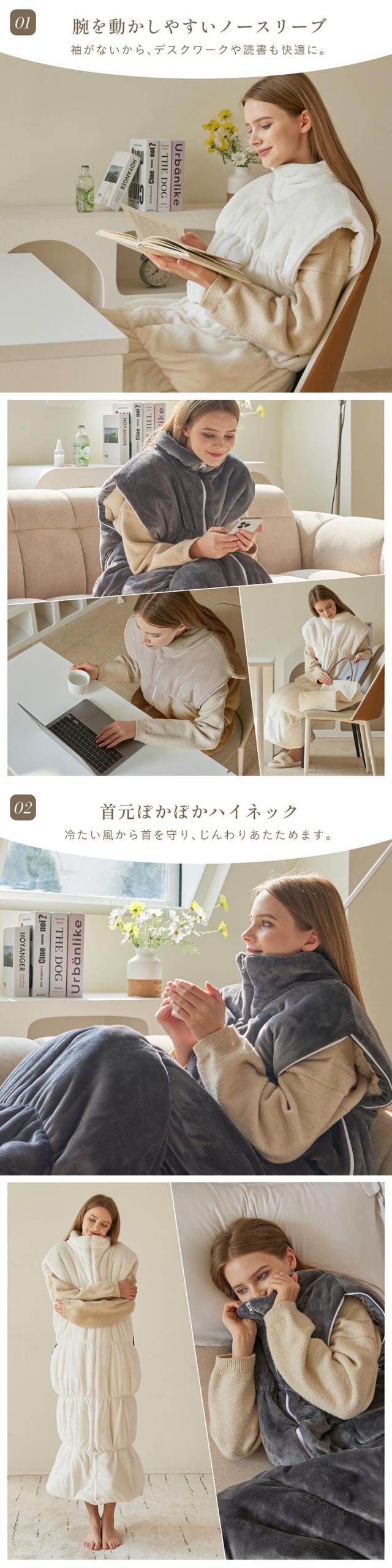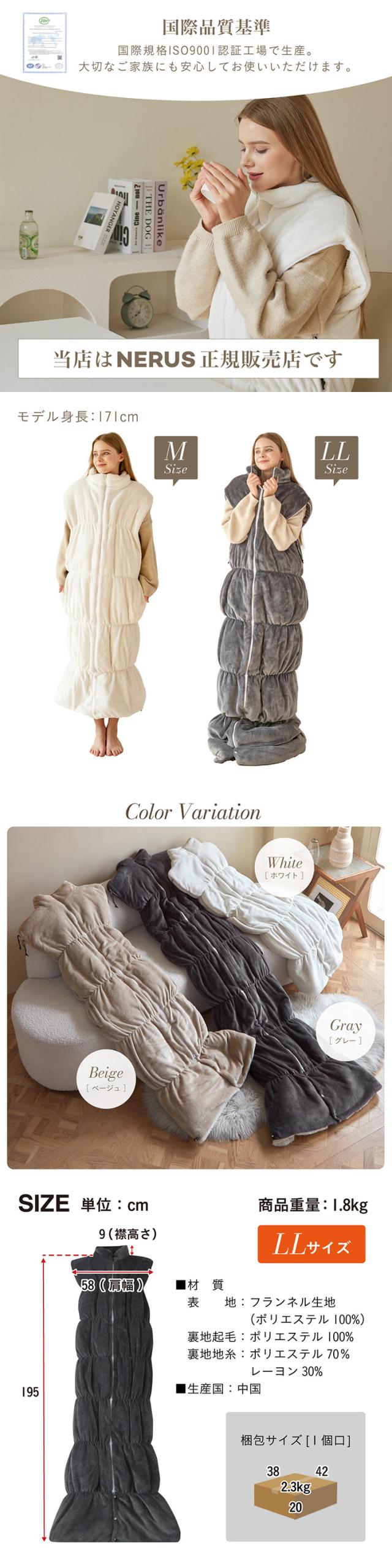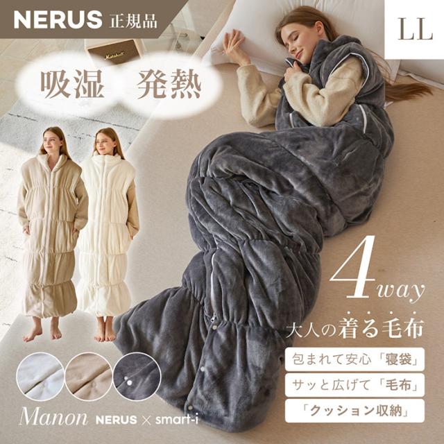 【NERUS 正規品 ネルス】寝具 着る毛布 大人用 吸湿発熱 4way Manon(マノン) LLサイズ 3色対応 おしゃれ 静電気防止 ノースリーブ ハイネック ファスナー式 寝袋スタイル クッション兼用 ポケット付き 洗える 秋冬用 防災
