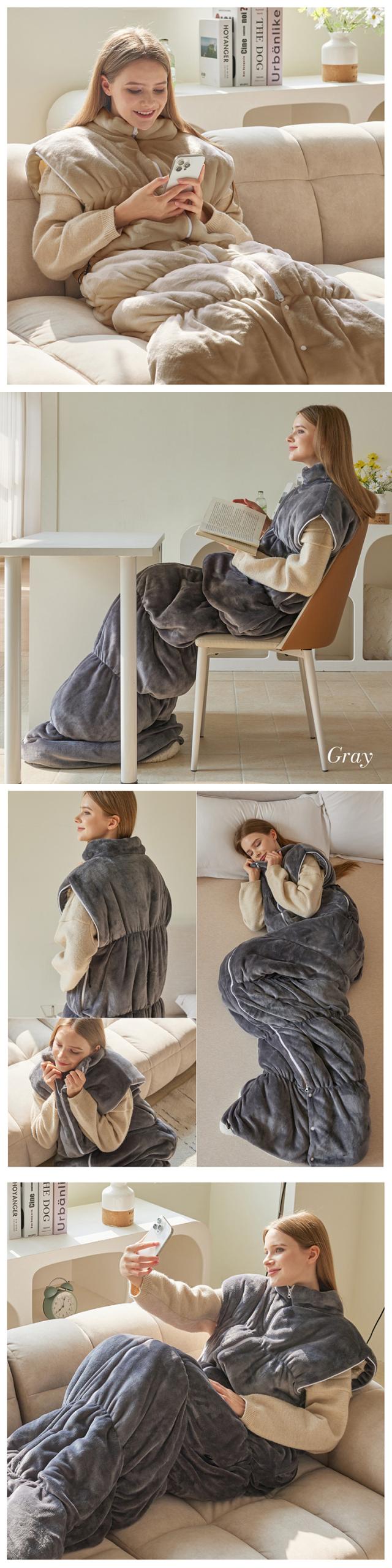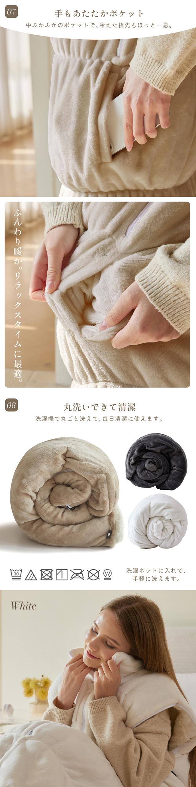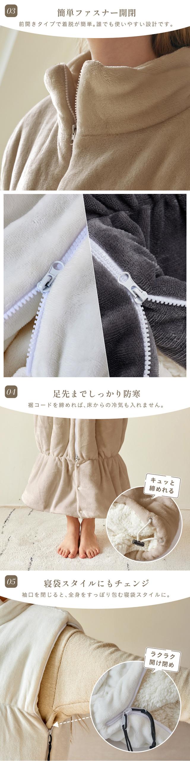 【NERUS 正規品 ネルス】寝具 着る毛布 大人用 吸湿発熱 4way Manon(マノン) LLサイズ 3色対応 おしゃれ 静電気防止 ノースリーブ ハイネック ファスナー式 寝袋スタイル クッション兼用 ポケット付き 洗える 秋冬用 防災