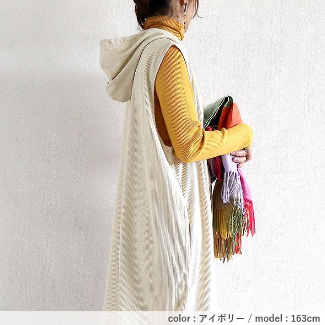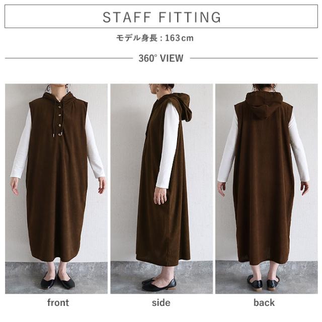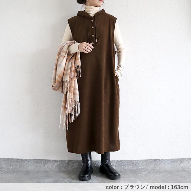 ワンピース レディース コーデュロイ 秋 冬 白 黒 フード付 ノースリーブ 重ね着 ミドル丈 ワンサイズ ナチュラル 動きやすい ポケット付 シンプル レイヤード きれいめ カジュアル 40代 30代 50代 60代 大きいサイズ ゆったり 大人 カジュアル かわいい SALE セール uricca ウリッカ うりっか
