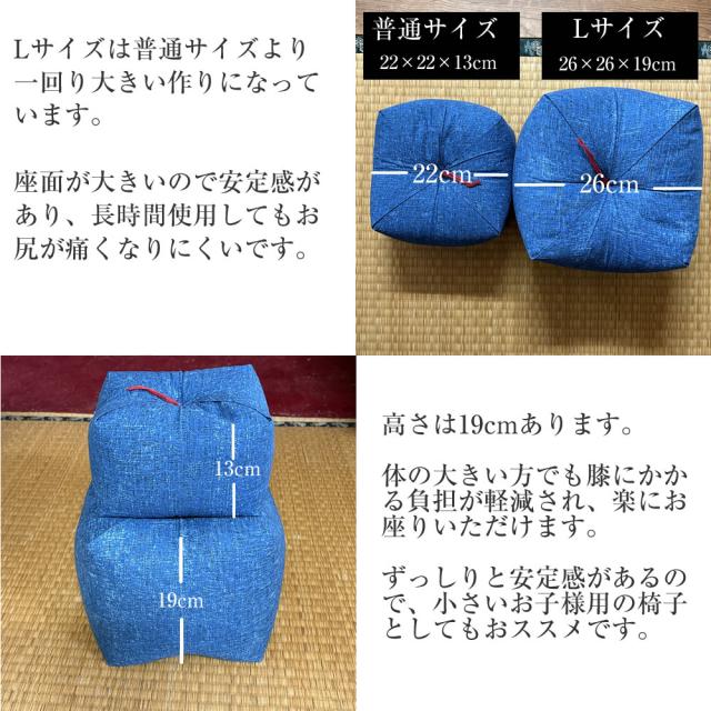 正座クッション Lサイズ そば殻入り 大【横約26cmx奥行約26cmx高さ約19cm】背筋が伸びて姿勢が整う 正座が楽になる 正座椅子 あぐら座布団 ごろ寝枕 お昼寝枕 天然素材 蕎麦殻 座布団 プレゼント ギフト 天然そばがら いす まくら 日本製 国産 あぐら椅子 あぐらクッション