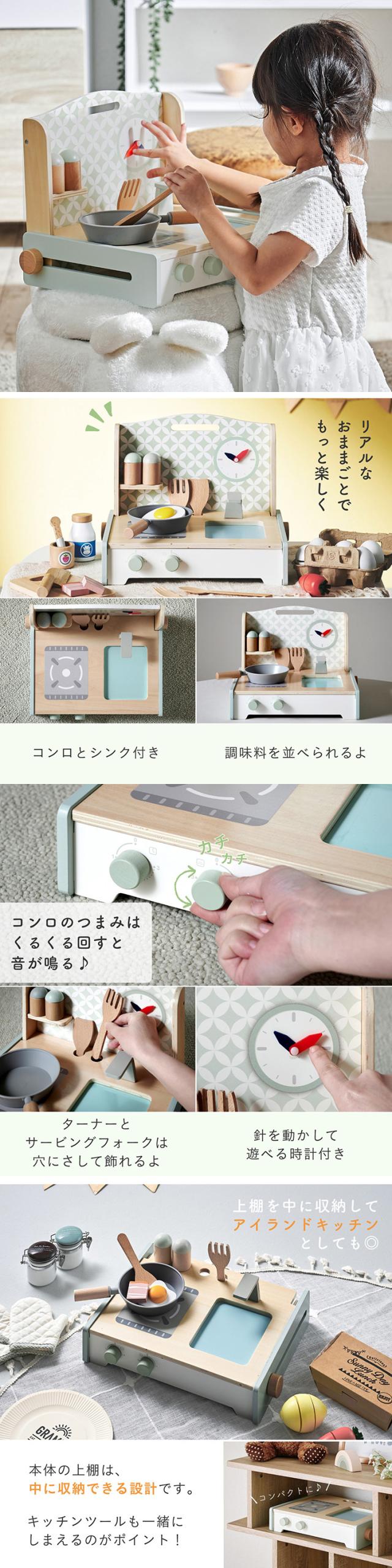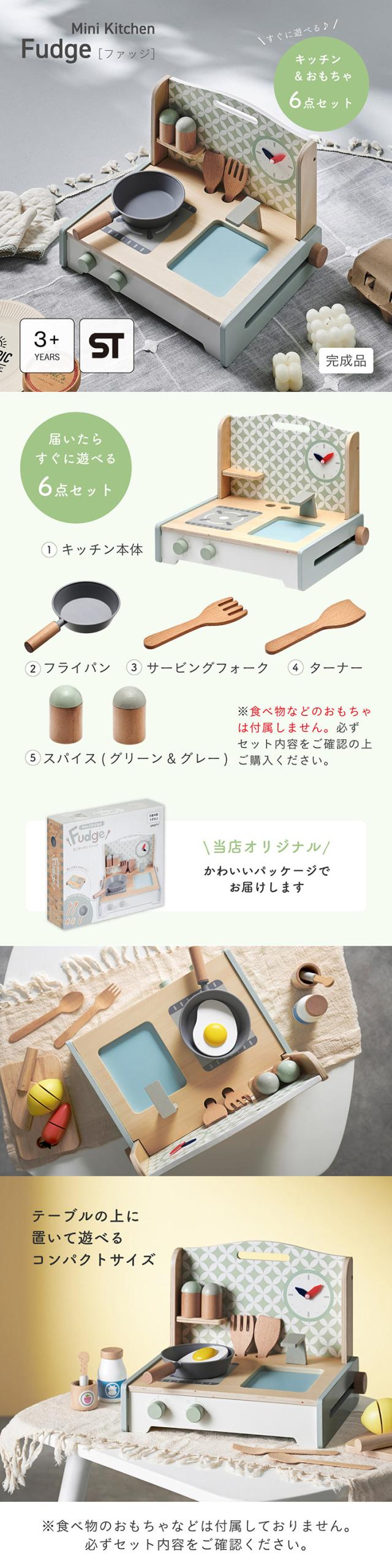 【完成品/STマーク付き】ままごとセット キッチン 6点セット ミニキッチン Fudge(ファッジ) おままごと おしゃれ キッチンツール 調理器具 ごっこ遊び 子ども おもちゃ 木製 知育玩具 プレゼント