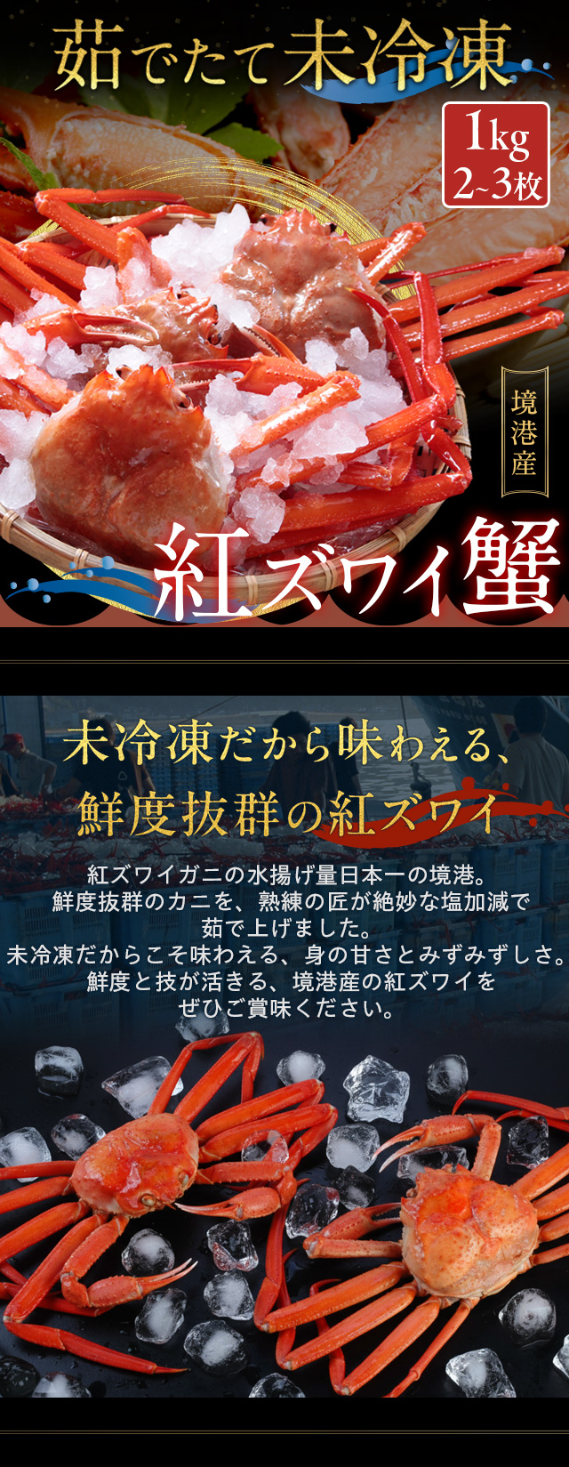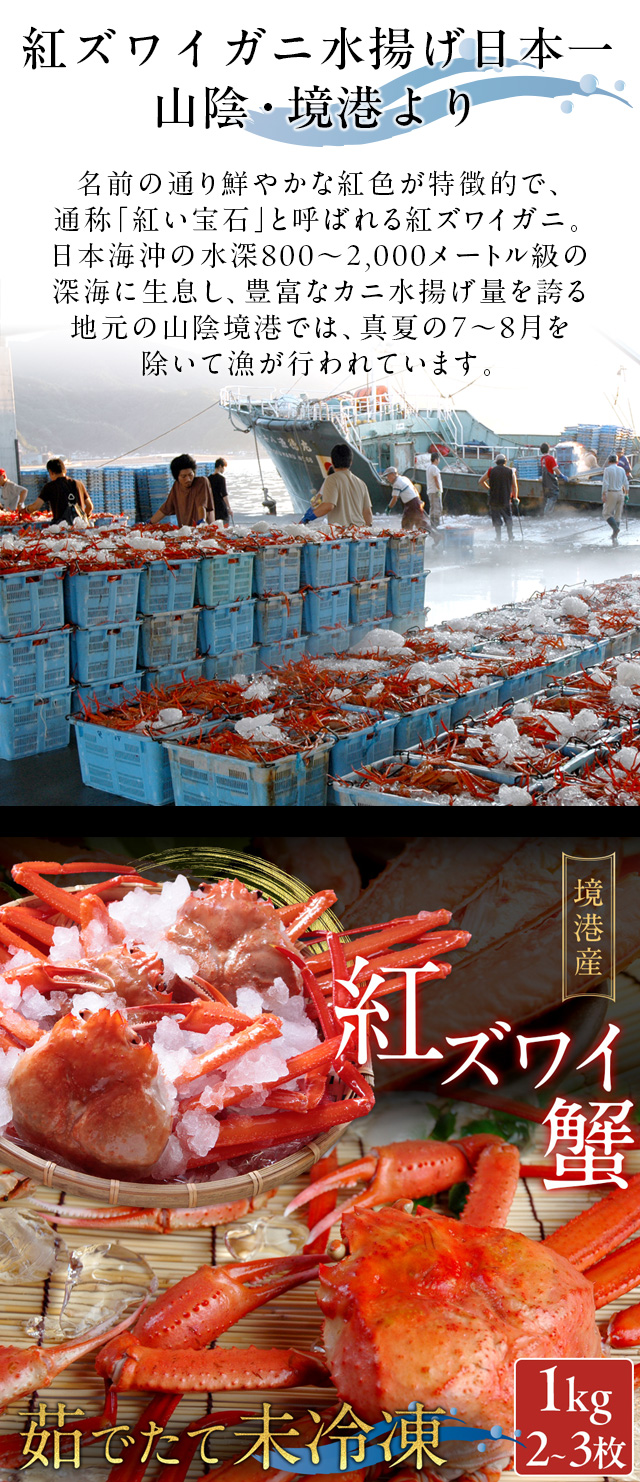 【茹でたて未冷凍で直送】鳥取・境港産 “浜茹で” 紅ズワイガニ(ベニズワイガニ/べにずわいがに) 訳あり 1kgセット(2〜3枚入) 姿 かに カニ 蟹 送料無料(北海道・沖縄を除く)