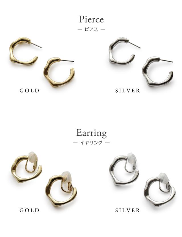 ピアス イヤリング レディース ニッケルフリー チタンポスト 金属アレルギー フープ ゴールド シルバー ニュアンス いびつ カジュアル シンプル デイリー 普段使い カジュアル オケージョン 大人かわいい オシャレ