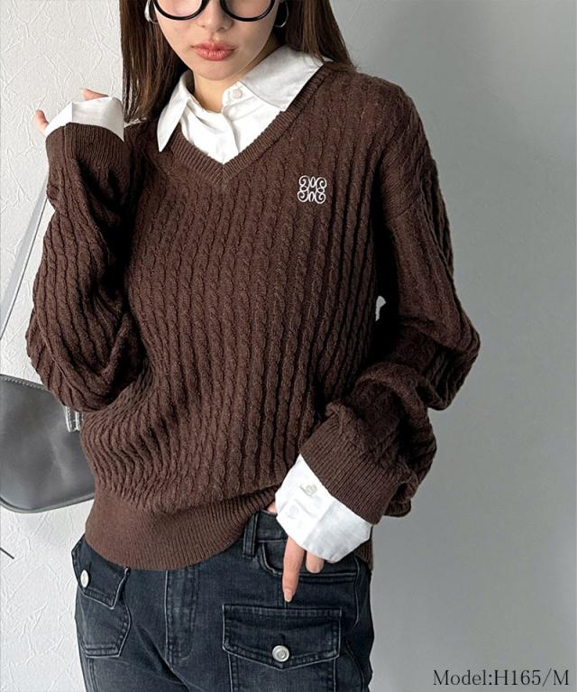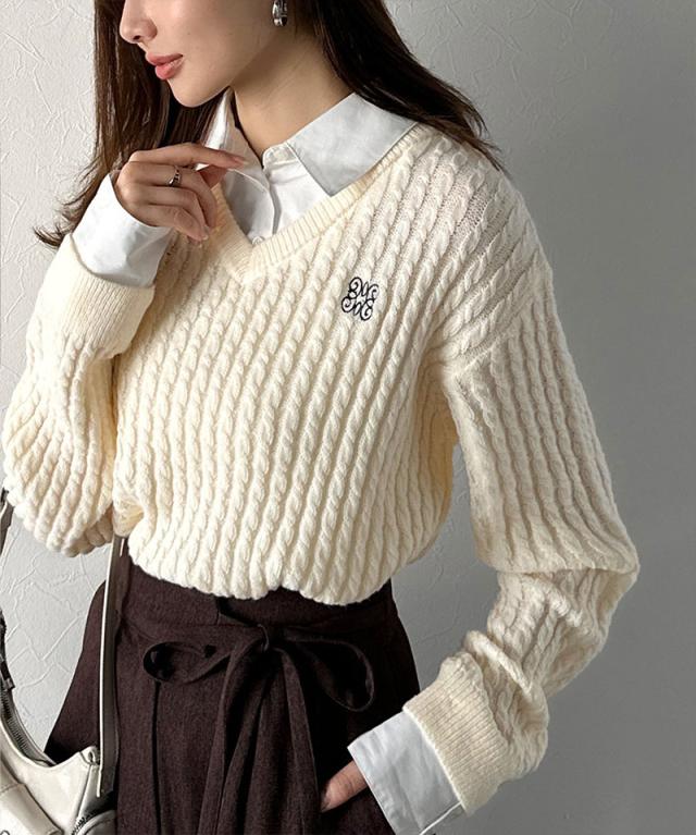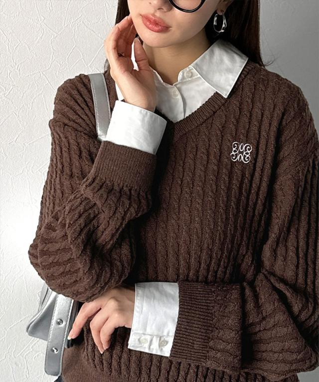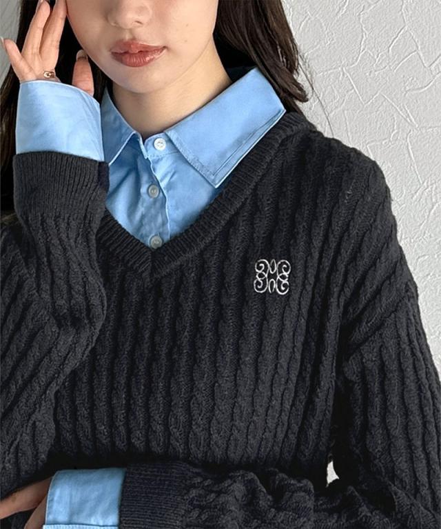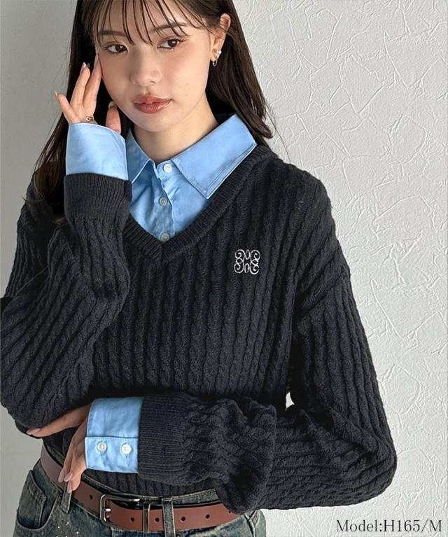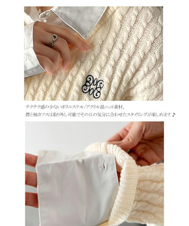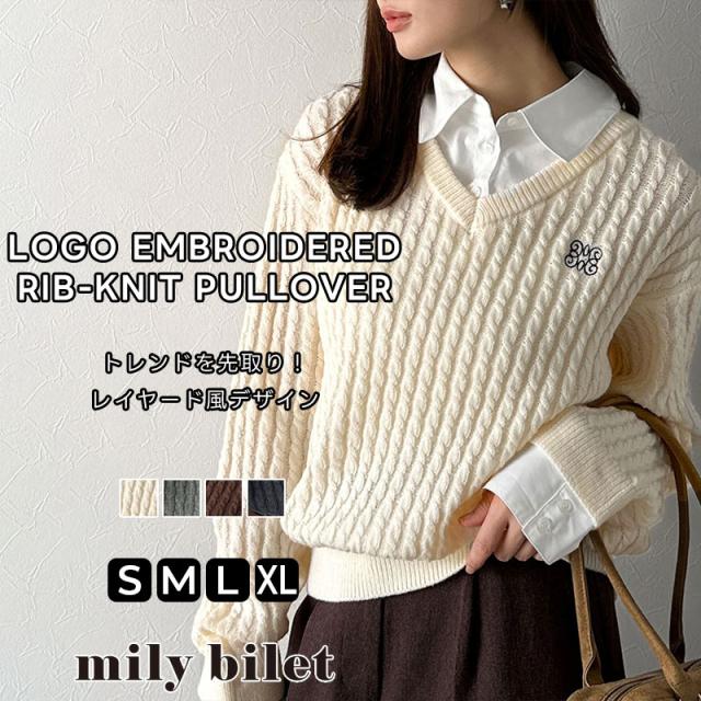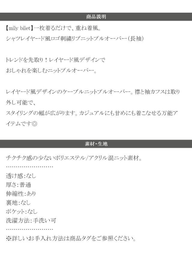 クラシカルエルフ秋新作 mily bilet トップス ニット レディース 長袖 重ね着風 シャツ レイヤード 風 ロゴ 刺繍 リブニット プルオーバー 長袖 大きいサイズ 2025aw クラシカルエルフ mi1029172