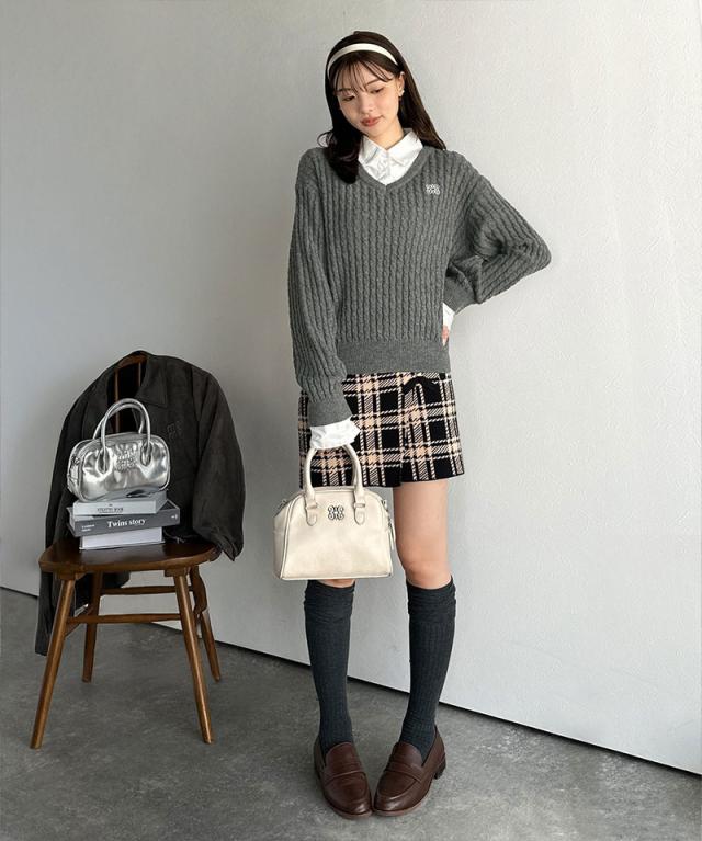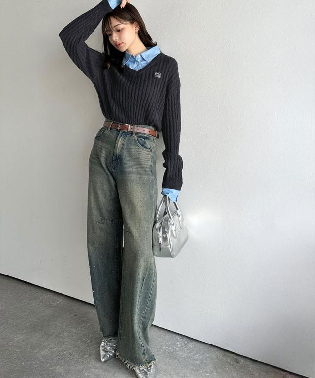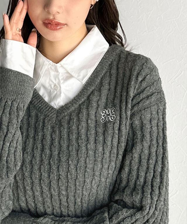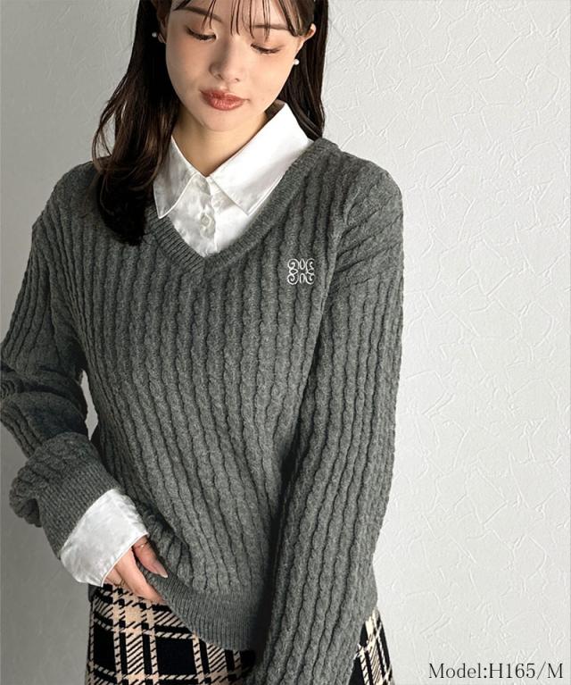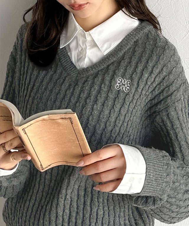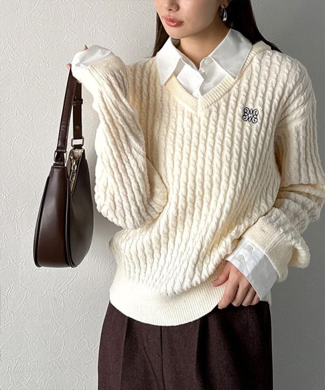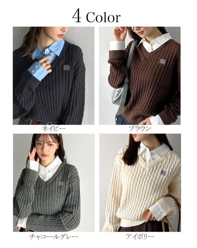 クラシカルエルフ秋新作 mily bilet トップス ニット レディース 長袖 重ね着風 シャツ レイヤード 風 ロゴ 刺繍 リブニット プルオーバー 長袖 大きいサイズ 2025aw クラシカルエルフ mi1029172
