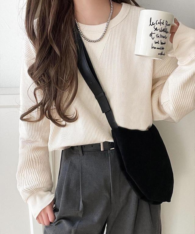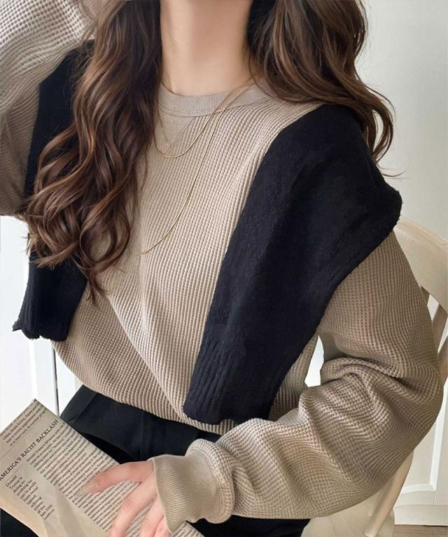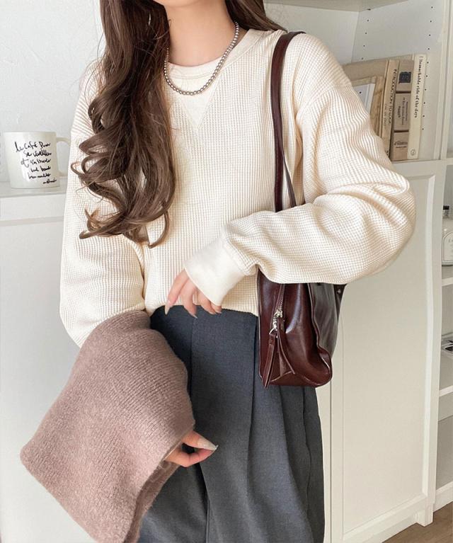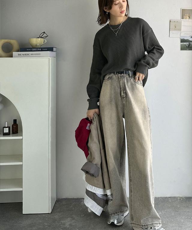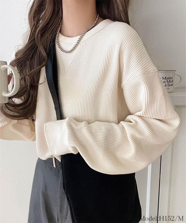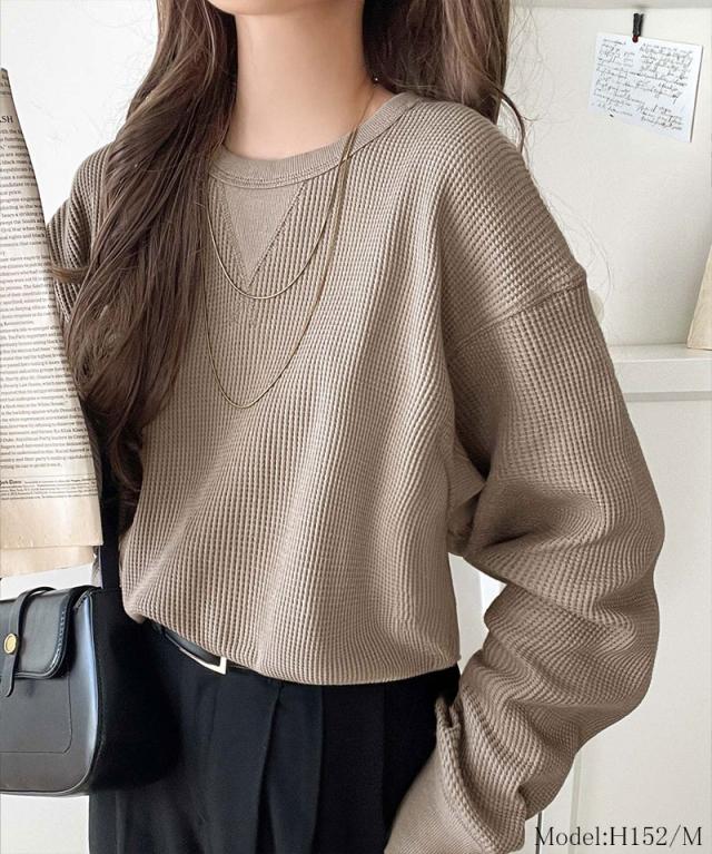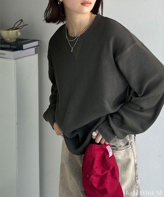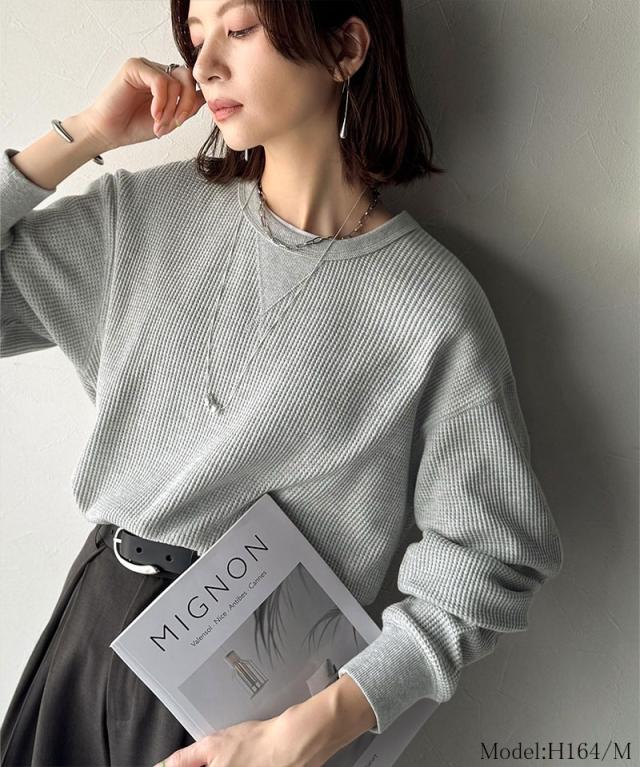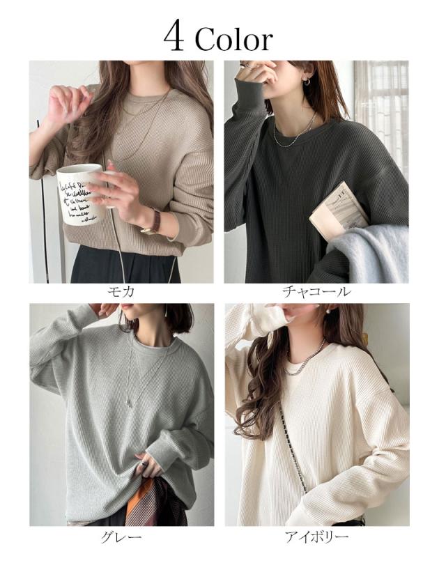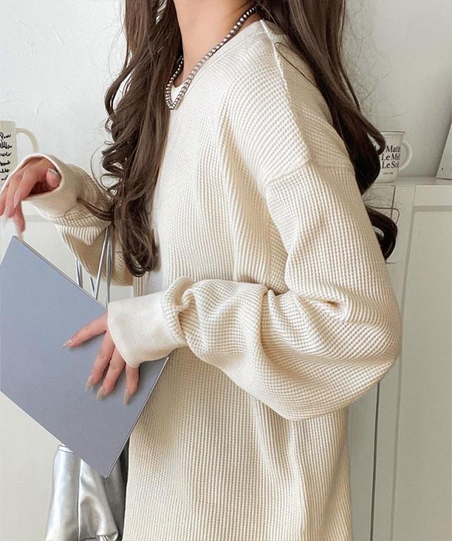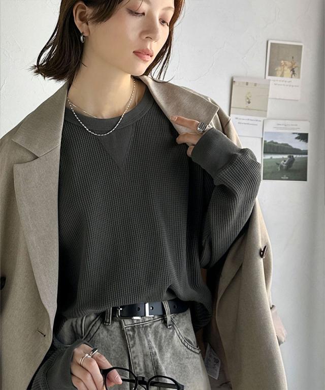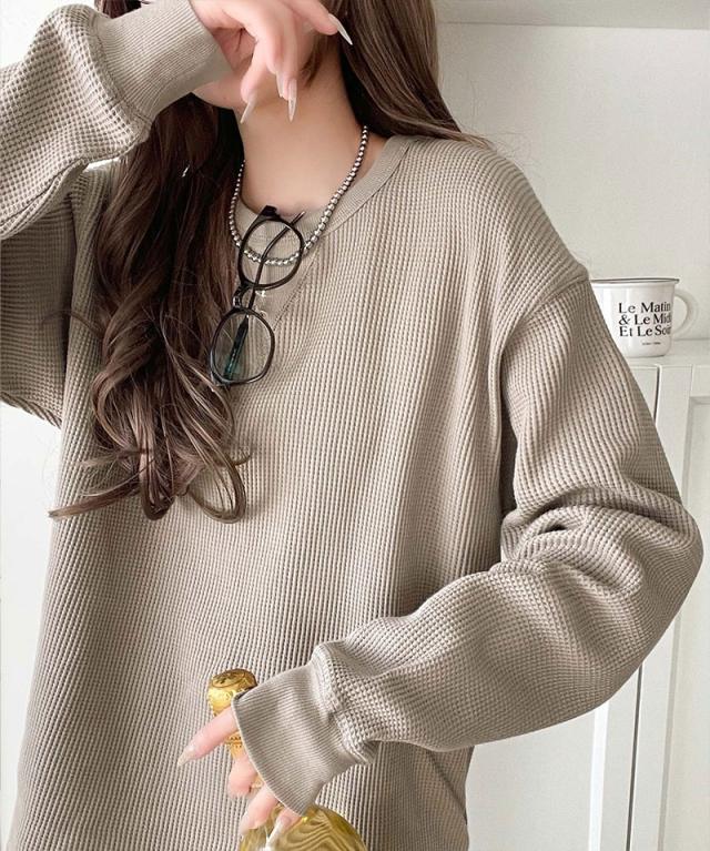 クラシカルエルフ冬新作 ロンt レディース ブランド トップス ニュアンス カラー 綿 100% V ガゼット 付き ワッフル 素材 ロンT 長袖 デイリー ゆるっと オーバーサイズ 大きいサイズ 2025aw ce1260518