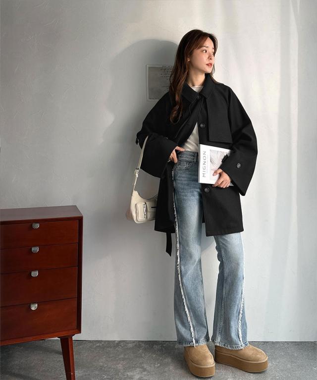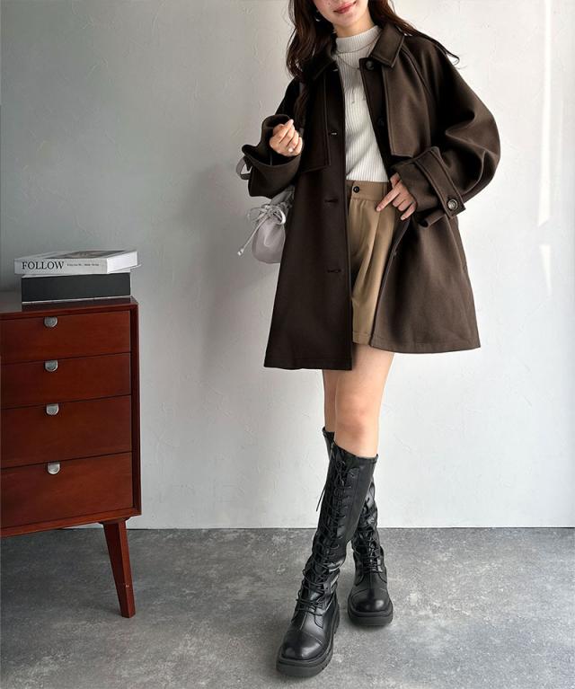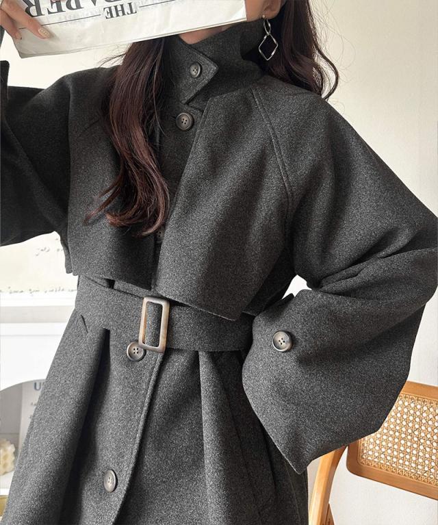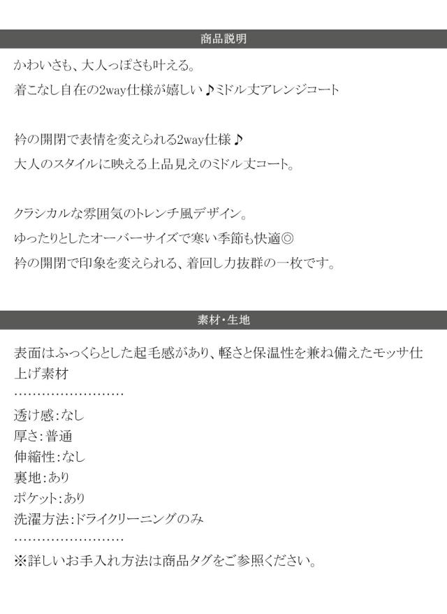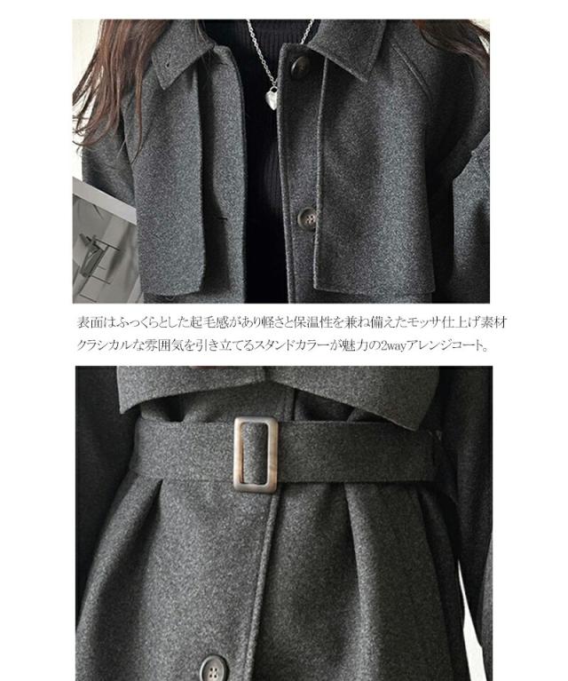 クラシカルエルフ秋新作 アウター レディース 秋 ジャケット 着こなし 自在 2way ステンカラー ミドル丈 アレンジ コート ゆるっと オーバーサイズ 大きいサイズ 2025aw ce1240094