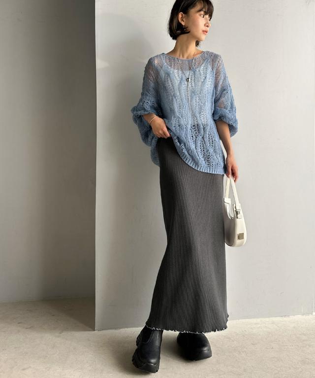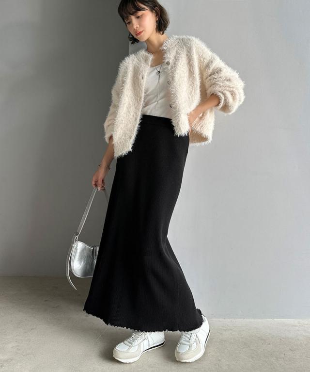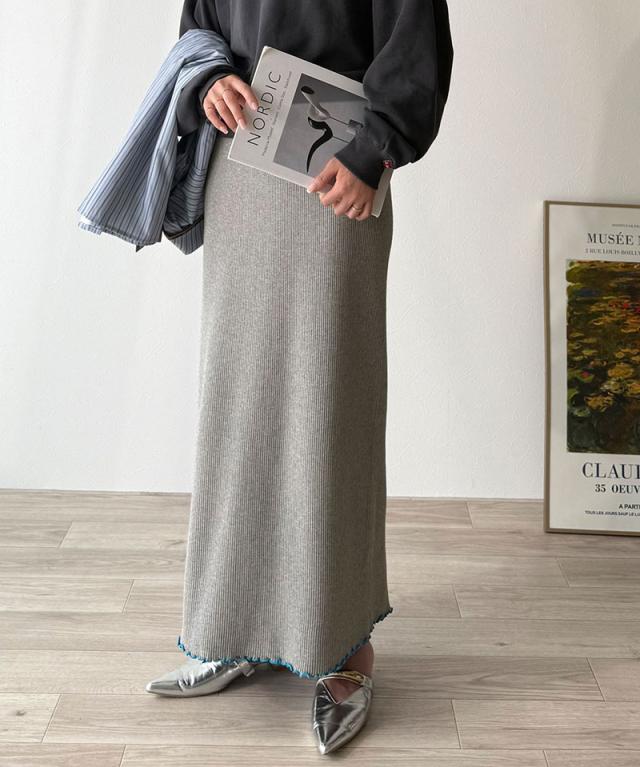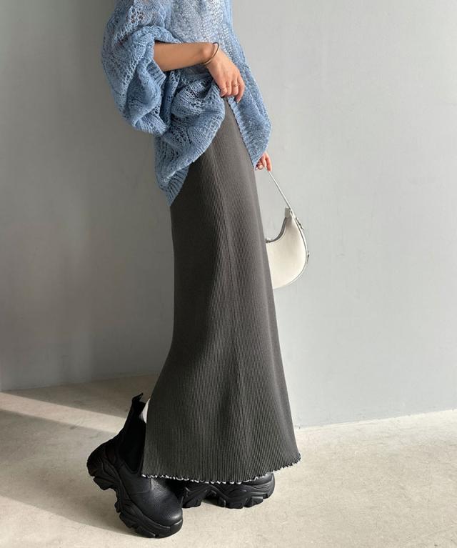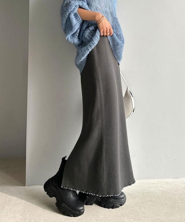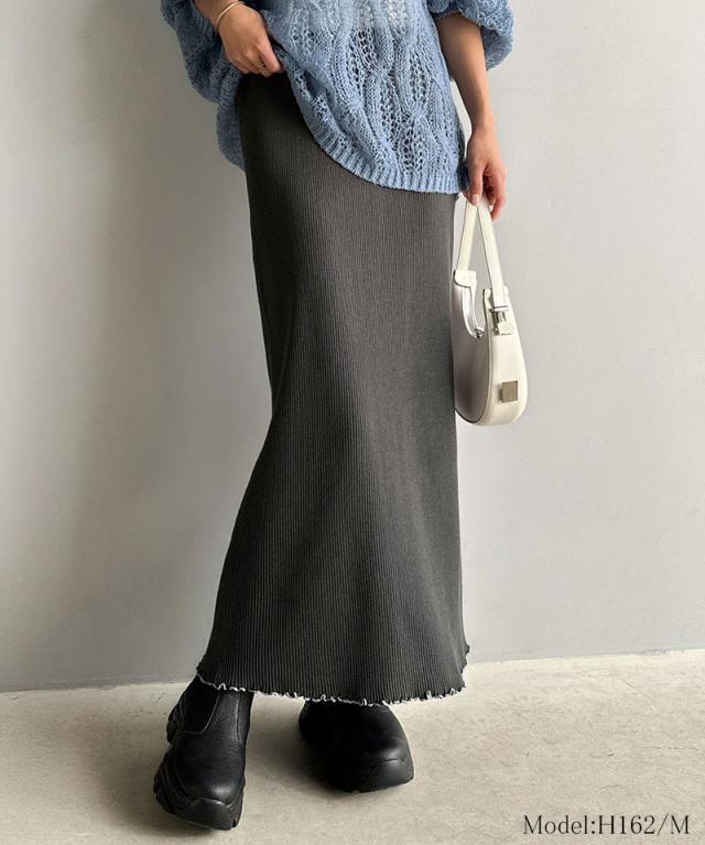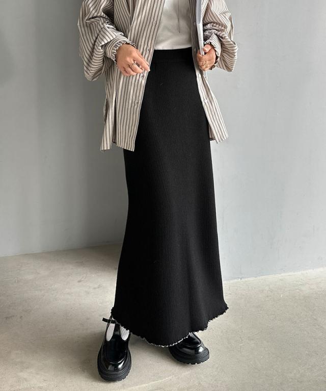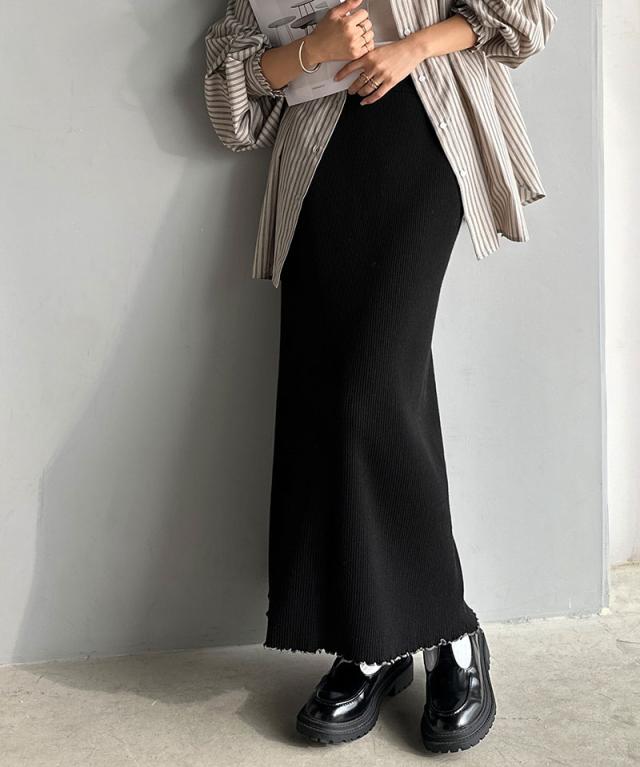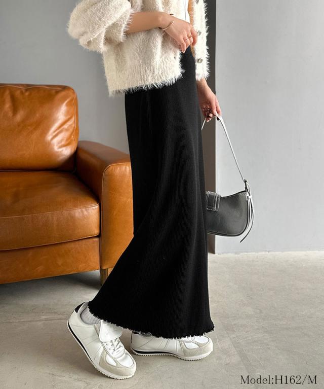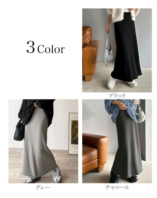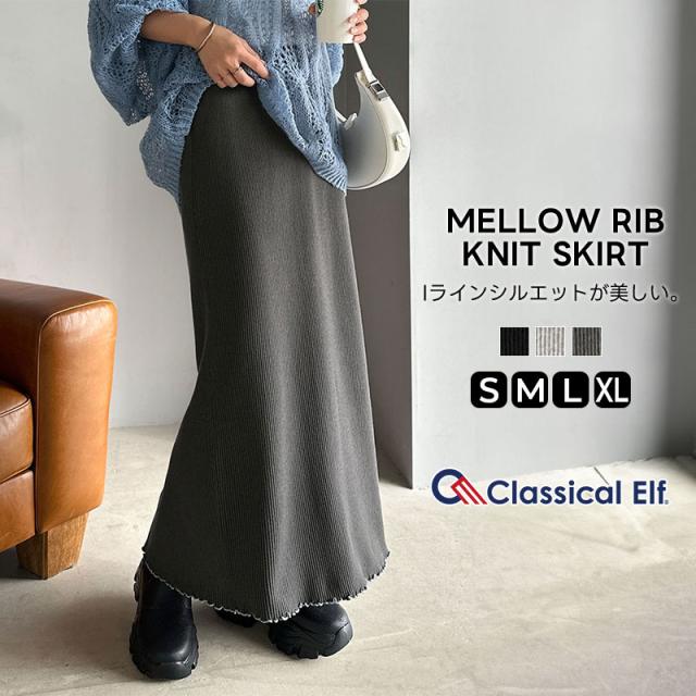 クラシカルエルフ秋新作 スカート ロング レディース ボトムス リブニット Iライン シンプル メロウデザイン 伸縮性 ストレート こなれ感UP 細見え タイト リラクシー ウエスト ゴム カジュアル 大きいサイズ 2025aw ce1380008