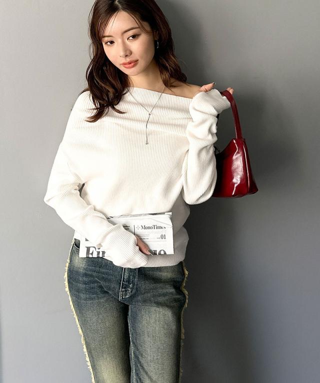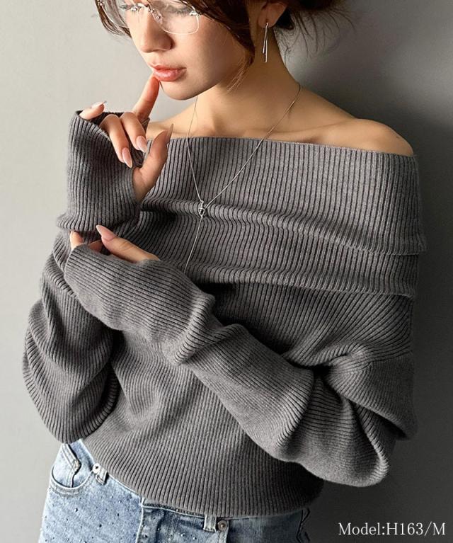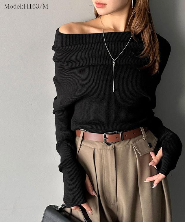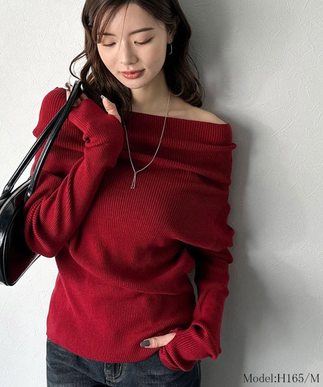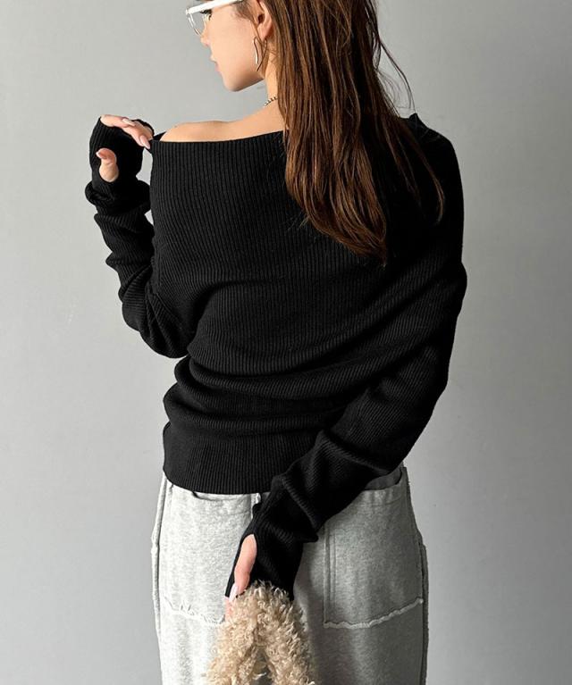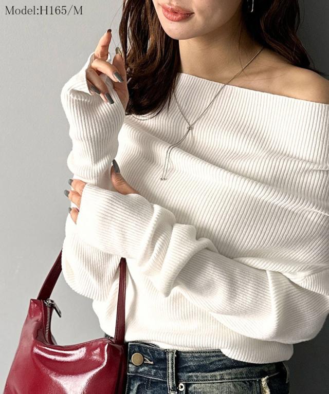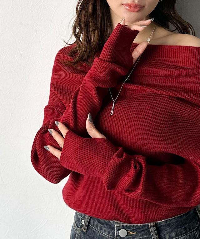 クラシカルエルフ秋新作 mily bilet トップス ニット レディース 長袖 オフショル 2WAY リブニット 指穴ドレープ 立体的 オフショル ワンショル ボートネック 華やか シーズンレス ゆったり 抜け感 オンオフ 伸縮性抜群 なめらか 大きいサイズ 2025aw mi1029137