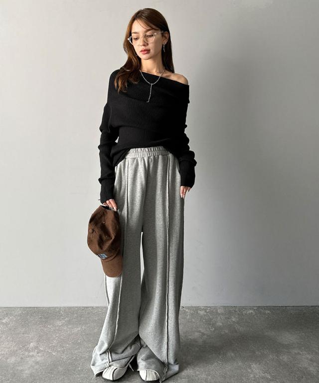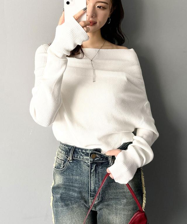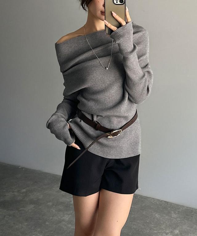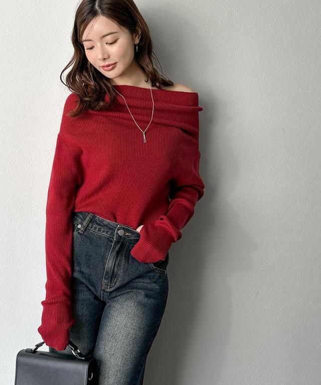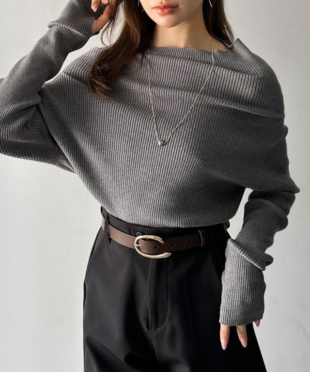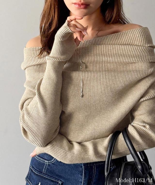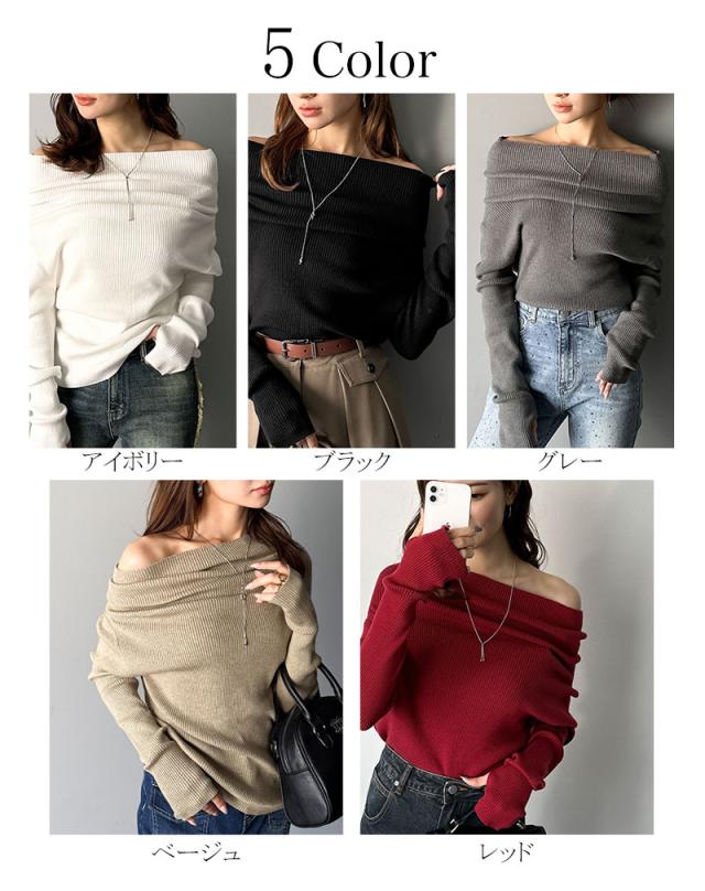 クラシカルエルフ秋新作 mily bilet トップス ニット レディース 長袖 オフショル 2WAY リブニット 指穴ドレープ 立体的 オフショル ワンショル ボートネック 華やか シーズンレス ゆったり 抜け感 オンオフ 伸縮性抜群 なめらか 大きいサイズ 2025aw mi1029137