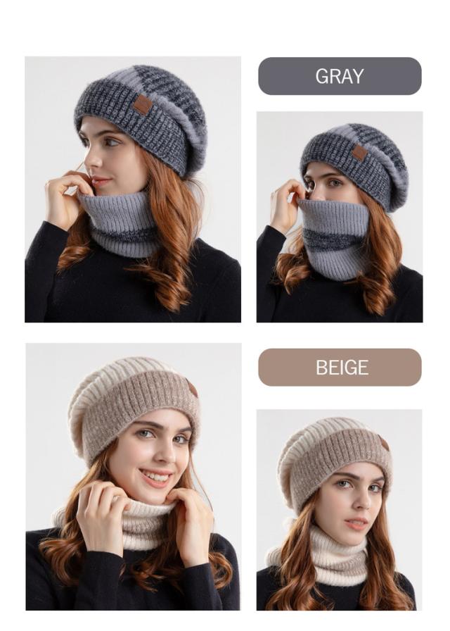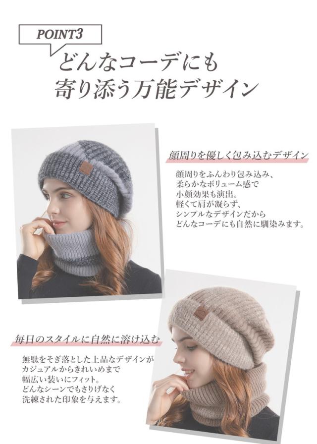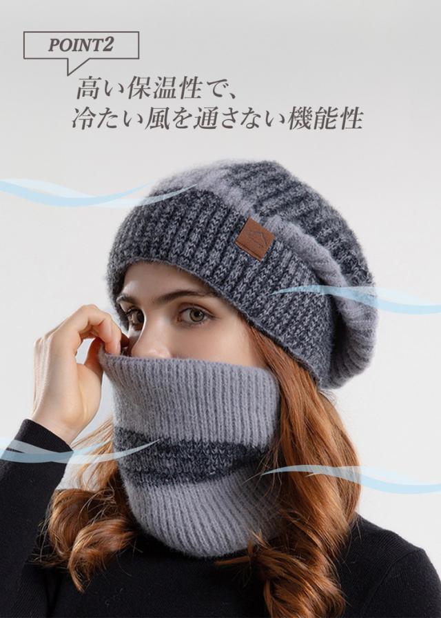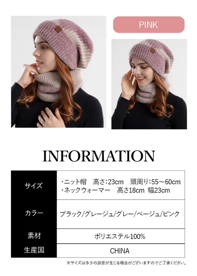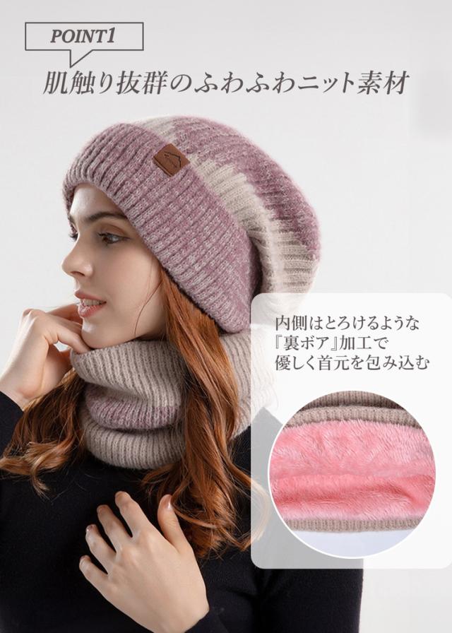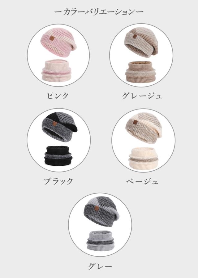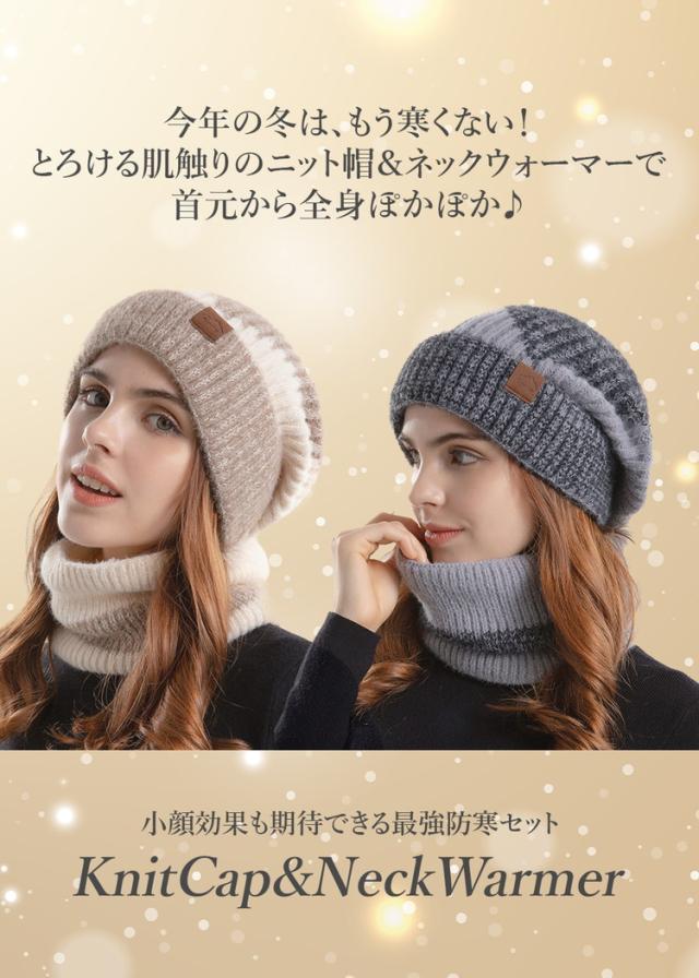 内側は裏起毛デザインのとても暖かいニット帽&ネックウォーマーセットです