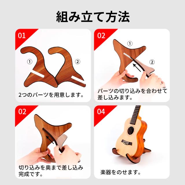 ウクレレスタンド 2本 OTOYELL 木製 折りたたみ コンパクト おすすめ かっこいい 木 組み立て 携帯 軽量 小型 省スペース スリム スポンジ 倒れない 立て掛け