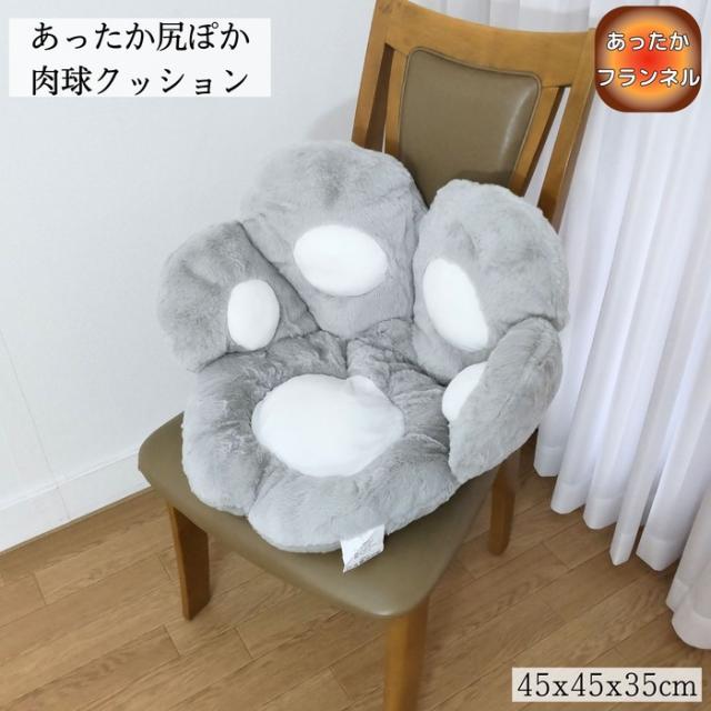 あったか尻ぽか肉球クッション グレー 45x45x35cm 肉球デザイン ふっくらわた フランネル生地 ペット使用OK