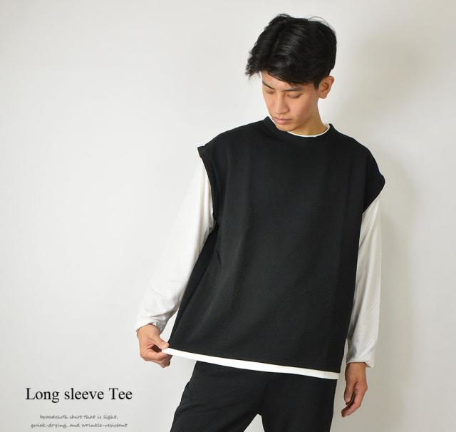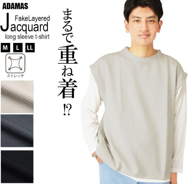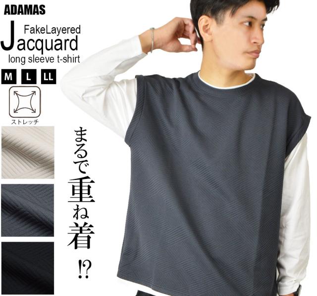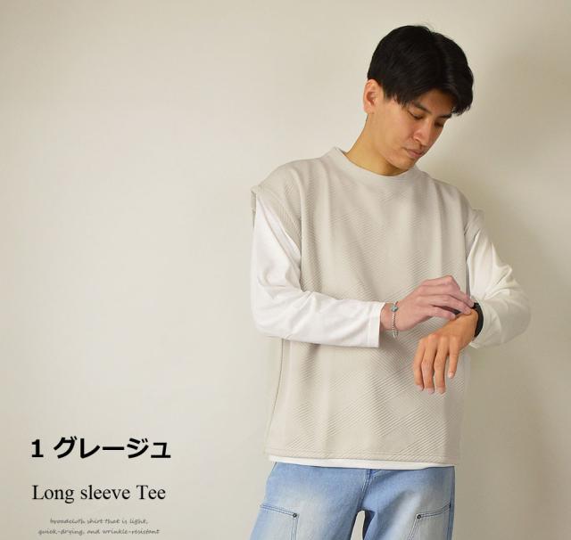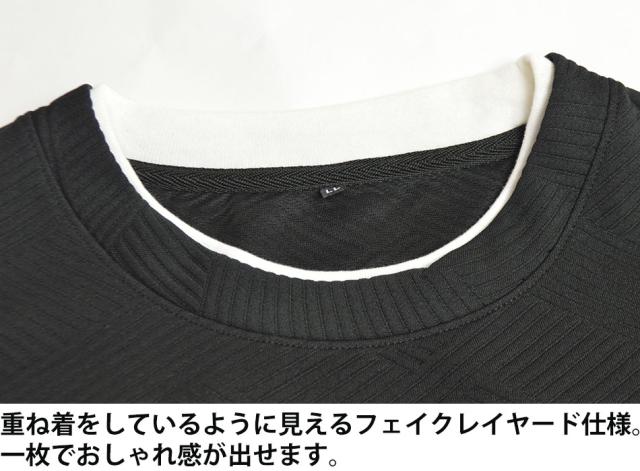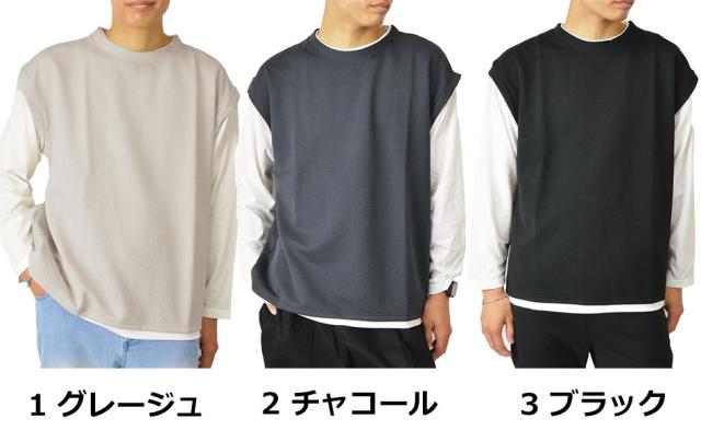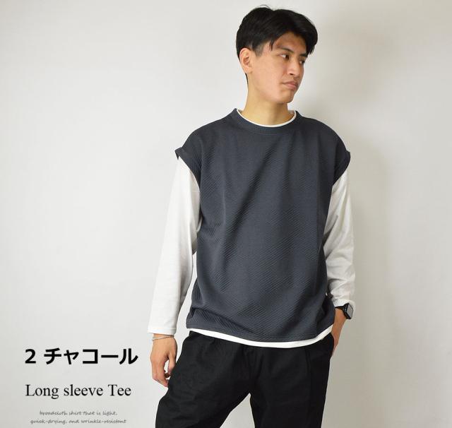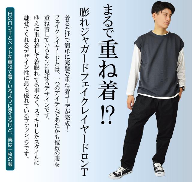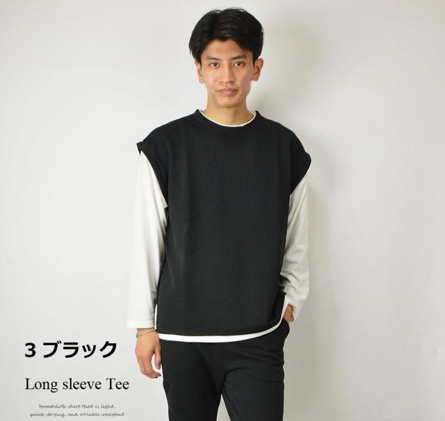 長袖Tシャツ メンズ ジャガード 幾何学柄 重ね着風 ゆったり ロンT 長袖 Tシャツ ベスト BIGサイズ 大きいサイズ オーバーサイズ ゆとり メンズTシャツ カットソー ビッグサイズ 大きめ ジャガード生地 ストレッチ 秋服 冬服 春服 秋 冬 春 おしゃれ ゴルフ 黒 新作