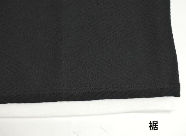 :ポリエステル98% ポリウレタン2%(幾何学柄 膨れジャガード) / 別布(白T部分):ポリエステル65% 綿35%(TC天竺)