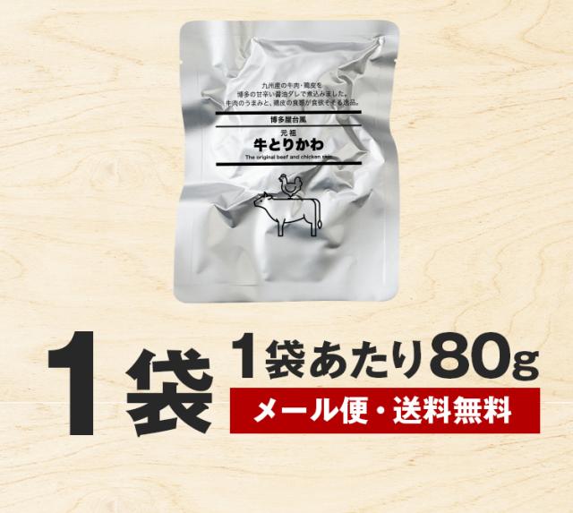 牛とりかわ 博多屋台風 80g 1袋 おつまみ 送料無料 500円ぽっきり お試し 国産 和牛 牛肉 鶏皮 しぐれ煮 ご飯のお供 佃煮 常温保存 非常食 おかず ギフト プレゼント とり皮 ぐるぐる 惣菜 旨さには 訳あり レトルト 食品 美味しい [メール便]