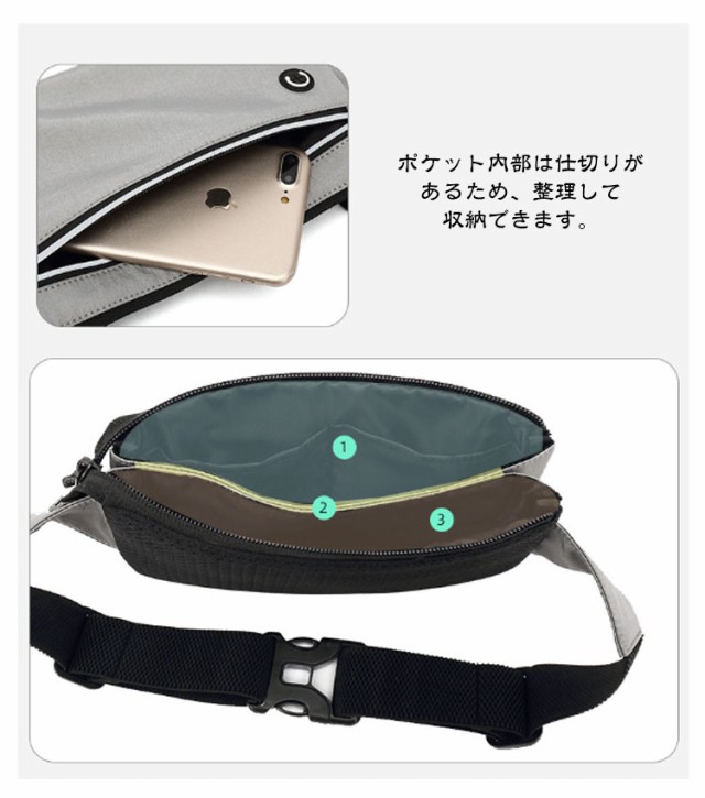 | 超薄型!超軽量!大容量ウエストポーチ スマホがすっぽりと収まり、小物や、肌身離さず持ち歩きたい貴重品を入れるのに最適なサイズ感です。 ポケット内部は仕切りがあるため、整理して収納できます。 服の中にもナチュラルに隠せる薄型、人間エ学に基づいたフィット設計されています。重量はわずかな135g、携帯便利。 長さも調整できるので身体にフィットして揺れにくいです。 ポーチの表面には防水加工を施しました。 ランニング中の汗や突然の雨などを気にすることなくご使用できます。 背中にあたる面は、通気性のあるメッシュ素材を使用。 ランニング中やウォーキング中も体に接している部分が蒸れることなく快適です。 飽きのこないシンプルなデザインのランニングポーチ。 ユニセックスデザインで女性でも男性でもお使いいただけます。 反射材がついているため、どこから光が当たっても反射します。ご安心して夜間のランニングをお楽しみください。 ランニング、ジョギングやウォーキング、マラソンやジム、アウトドアなどあらゆる用途に対応できます。 また普段使いやファッションアイテムのボディバッグとしても◎ | |