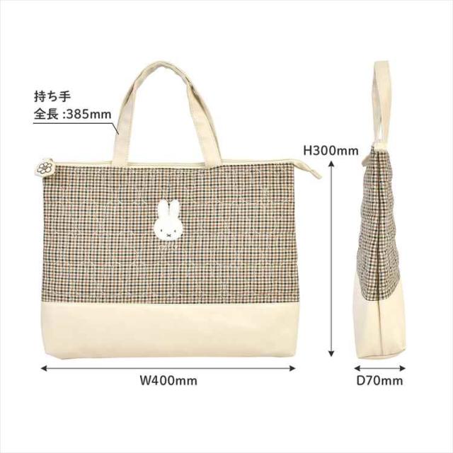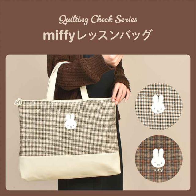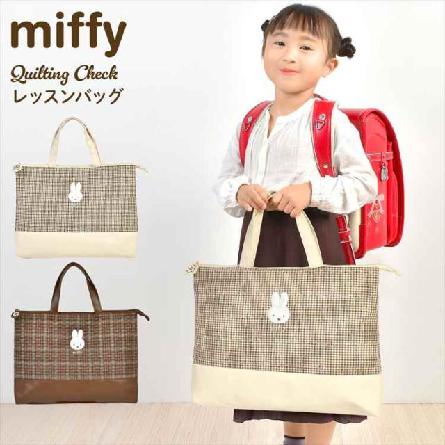 レッスンバッグ キルティング 女の子 ミッフィー miffy 小学生 中学生 高校生 大人 おしゃれ かわいい 大容量 手提げバッグ お稽古バッグ トートバッグ サブバッグ 塾 ピアノ 習い事 かばん ファスナー 内ポケット マチ付き 丈夫 通学 通勤 チェック柄 アイボリー ブラウン