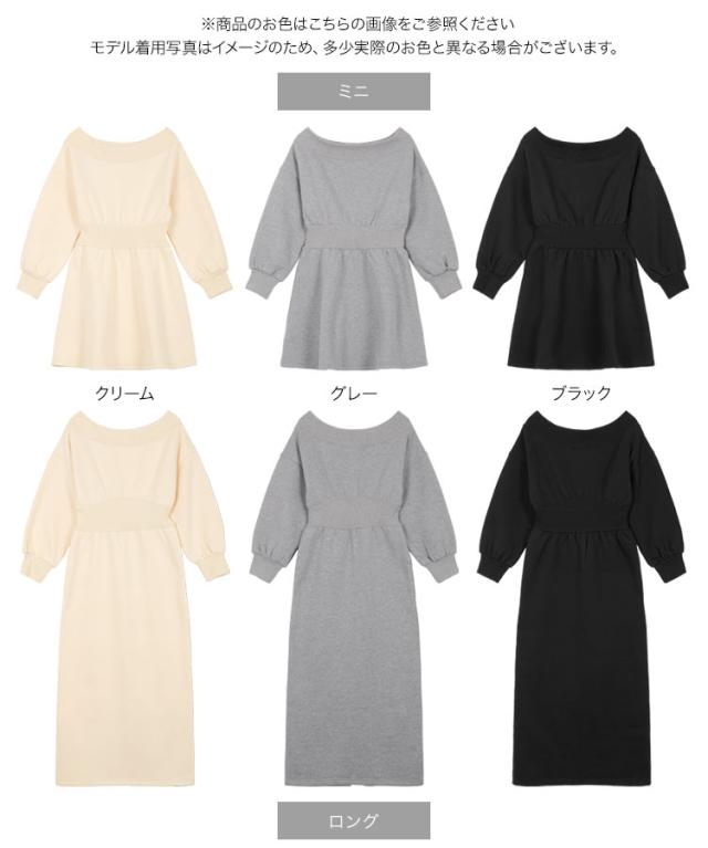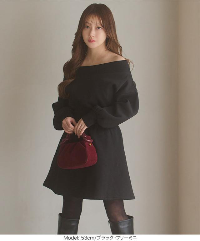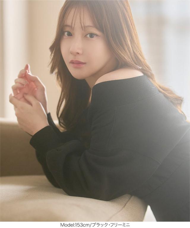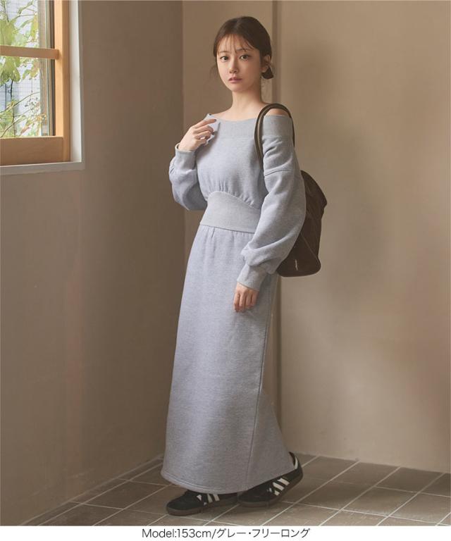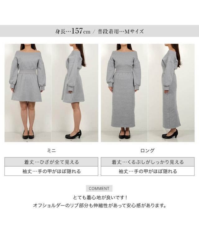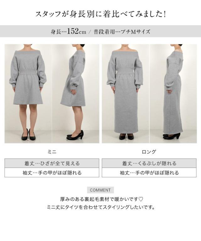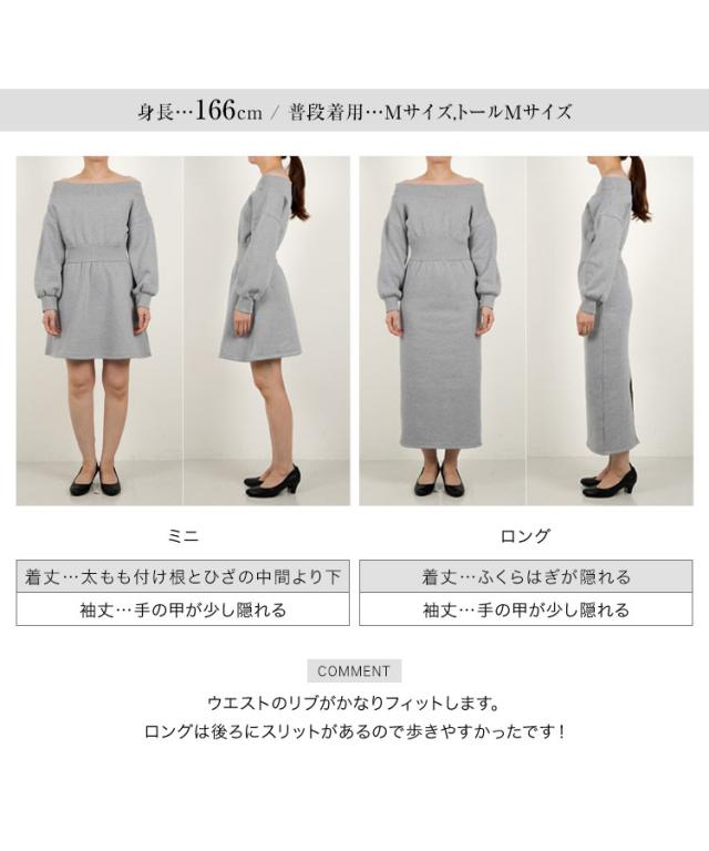 [ 小澤美里さんコラボ ]選べる2丈裏起毛スウェットオフショルダーワンピース E3502 入荷済 レディース 20代 30代 40代 ワンピース ozami おざみ 裏起毛 長袖 暖か スウェット スエット ワンマイル リラックス ミニ丈