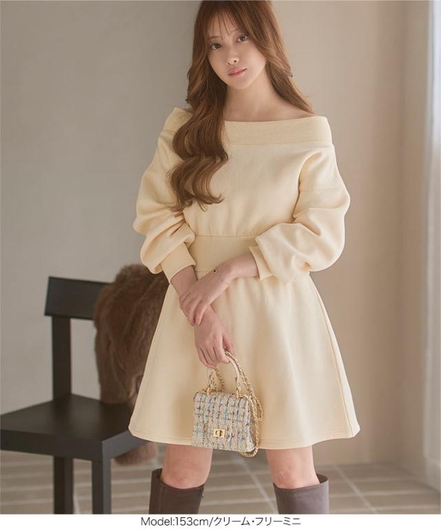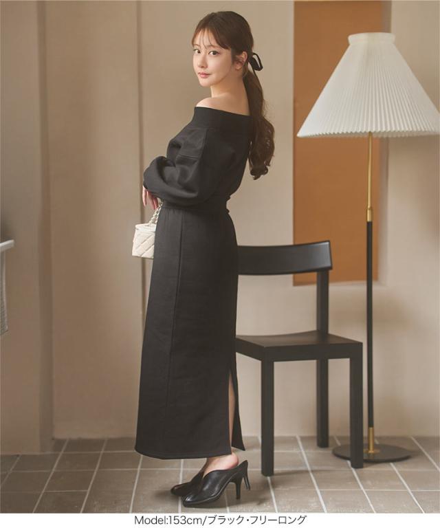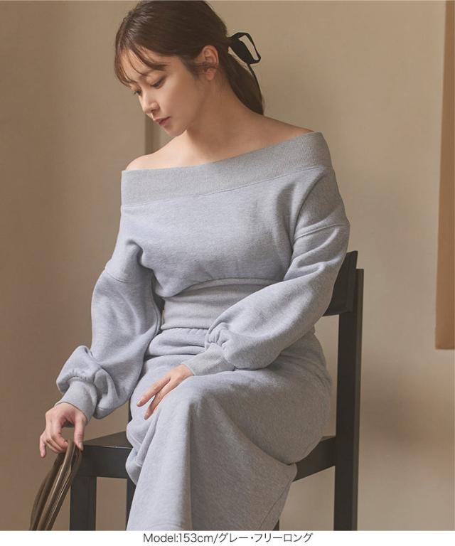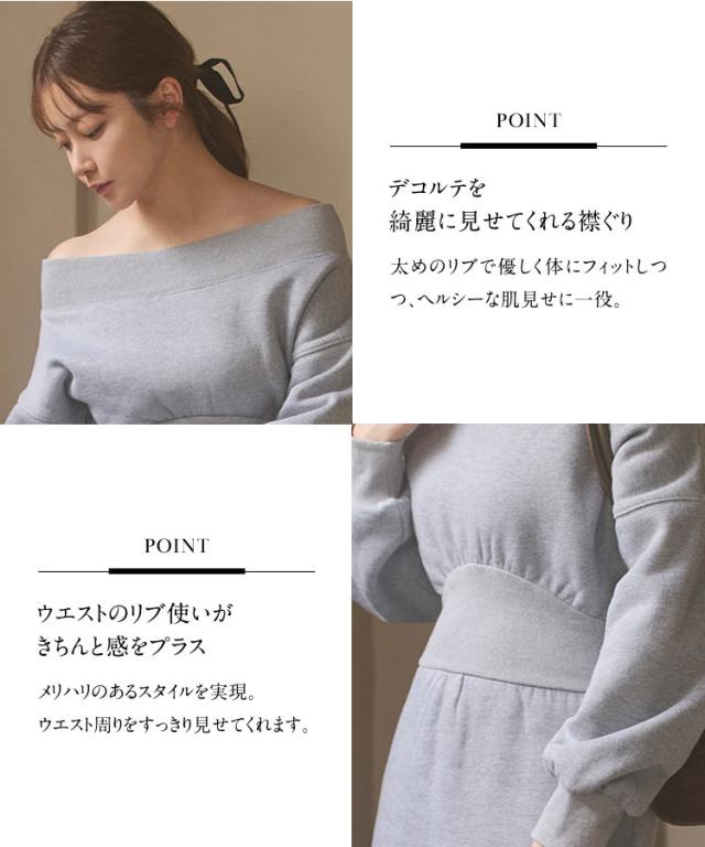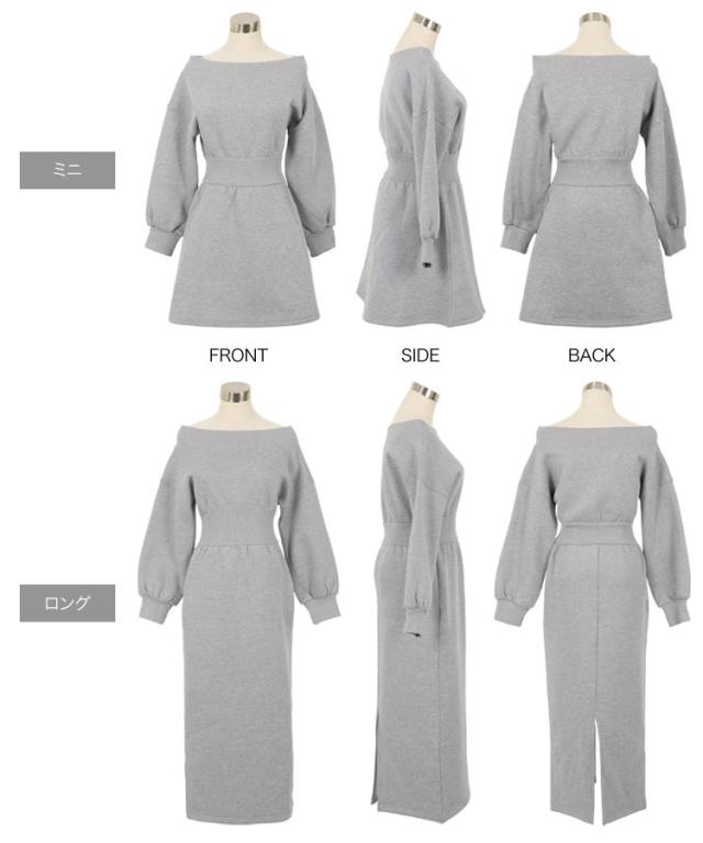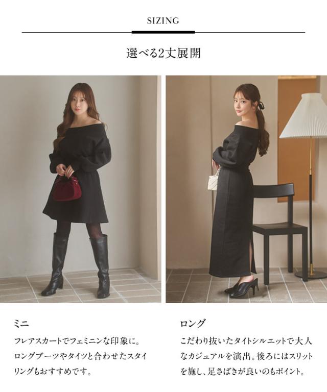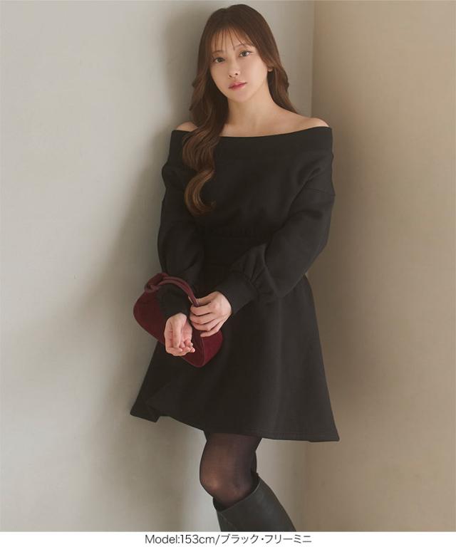[ 小澤美里さんコラボ ]選べる2丈裏起毛スウェットオフショルダーワンピース E3502 入荷済 レディース 20代 30代 40代 ワンピース ozami おざみ 裏起毛 長袖 暖か スウェット スエット ワンマイル リラックス ミニ丈