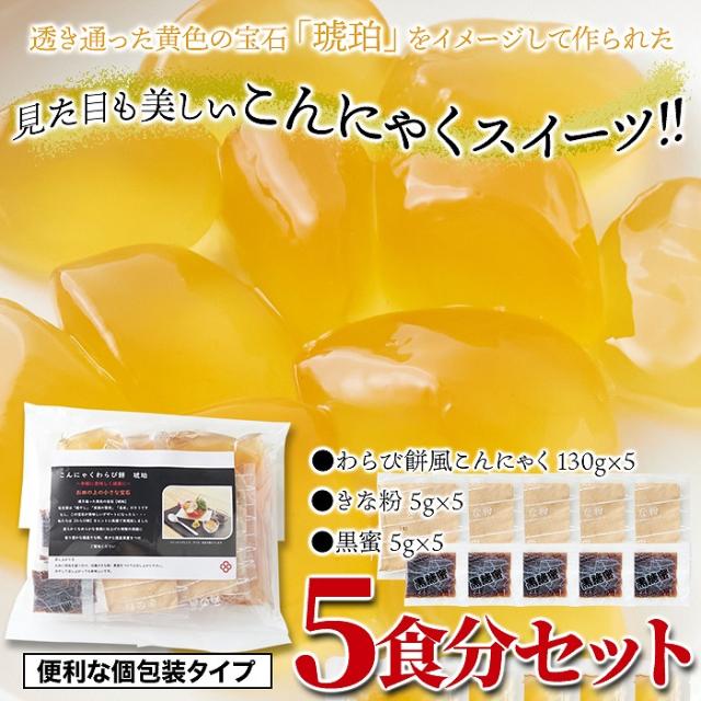 【便利な個包装タイプ×5食分セット】透き通った黄色の宝石「琥珀」をイメージして作られた見た目も美しいこんにゃくスイーツ!!きな粉と黒蜜を5食分セットにしてお届けします!!