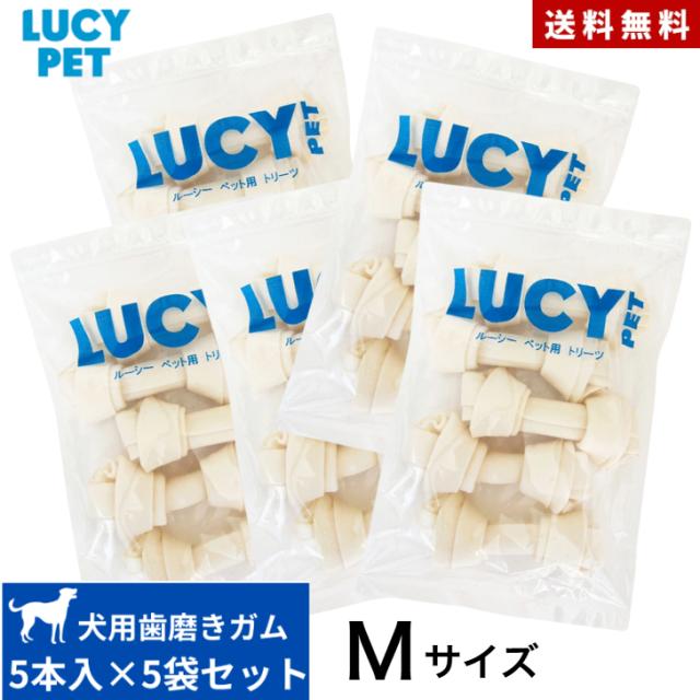 ルーシーペット チューイングボーン M サイズ(5本入200g) 5点セット 正規品 犬 犬用おやつ トリーツ 無添加 あご 歯ぐき 運動 ガム おやつ 骨型 牛肉皮 歯磨き 歯茎 マッサージ 大型犬 中型犬 【送料無料】