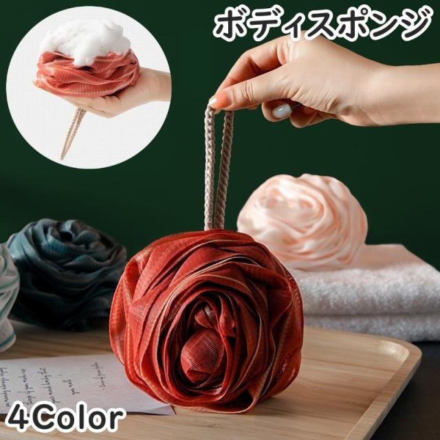 ボディスポンジ バススポンジ ボディタオル 泡立てネット ループ付き 吊り下げ 丸形 単色 フラワー風 ボディケア 泡立ち 体洗