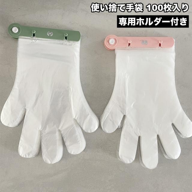 使い捨て手袋 100枚入り 専用ホルダー付き 手袋ホルダー ビニール手袋 簡単装着 片手装着 透明 左右兼用 薄手 防水 作業用
