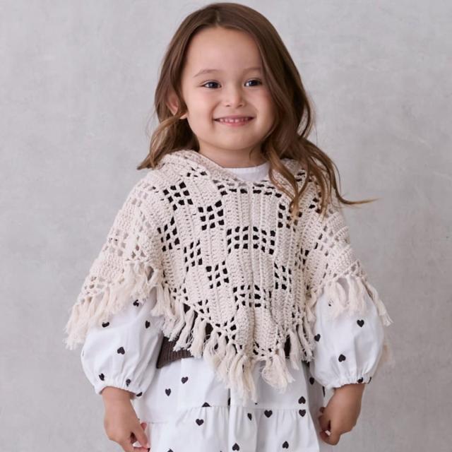 コーディネートのアクセントとなるクロシェのポンチョです。