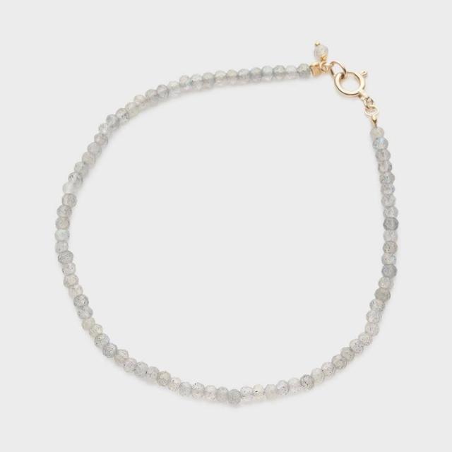 小粒のグレーカラーのラブラドライトでシンプルに仕立てたブレスレット。ラブラドライトはオーロラのような不思議な輝きが宇宙を連想させることから、宇宙のパワーが宿るとされています。ひとつ着けるだけで手元が華やかになるアイテムです。※天然石や天然素材を使用しているものは、サイズ・色味・風合いの違いや、若干の傷、内包物の有無などに個体差があります。予めご了承ください。※引き輪・丸カンはK10、シャンク線はゴールドフィルドを使用しています。
