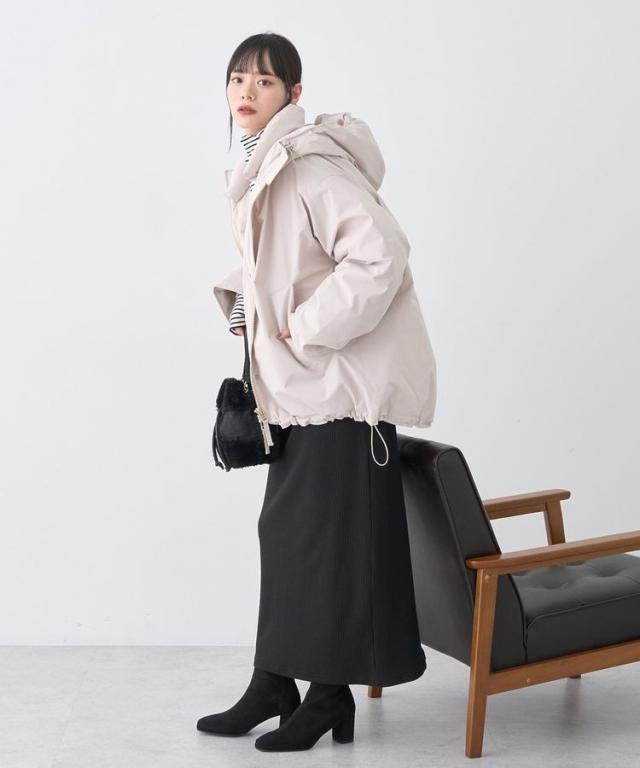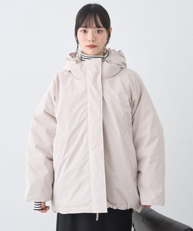 環境に優しいリサイクルポリエステルを使用したパファーコート。風を通しにくく、ふっくらとした中綿生地の温かな着用感が魅力です。手首周りを優しく包み込む袖口の内側リブ仕様も嬉しいポイント。裾とフードに施したドロストでお好みのボリュームを付けてフォルムアレンジもお楽しみいただけます。