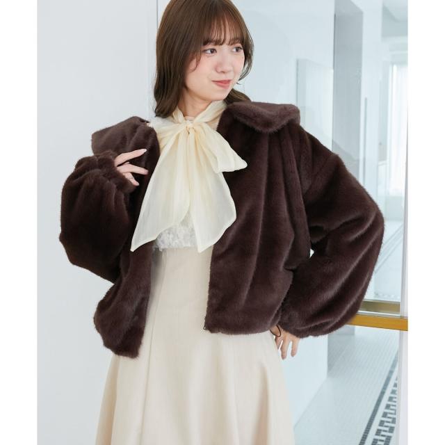 ふわふわのボア素材を使用した、シーズンムードたっぷりのジップアップジャケット。