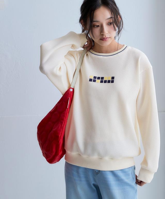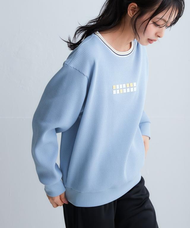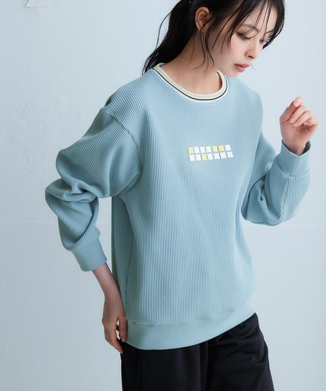 スポーツラインにオリジナルのアクティブウェアが登場! アクティブなシーンだけでなく、おしゃれ着としても着用できます。 ■デザイン 衿元は配色リブ仕様。 胸元にはシンプルになりすぎない立体感のあるプリントを施しました。 袖口はへたりにくいリブ仕様。 ドロップショルダーで肩回りがゆったり動きやすい。 丈感はお尻にかかるくらいなので重いシルエットにもなりすぎず、体型カバーも。 ■素材 ワッフル素材の凹凸が特徴で、さらっとした肌触りで快適に着用できます。 また表面感のある素材なのでシワや毛羽立ちが目立ちにくい。 UVカット機能付きで日焼け対策もばっちり。 吸汗速乾機能付きなので汗をかいても乾きやすく、さらっと快適に着用いただけます。 ジムやスポーツなどのアクティブなシーンやリラックスシーン、街中でのタウンユースコーデとしてなど幅広く着用できます。 ■コーディネート デニムやスカートなどお持ちのアイテムで簡単にコーディネートできます。