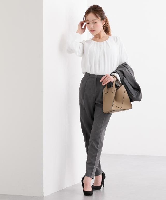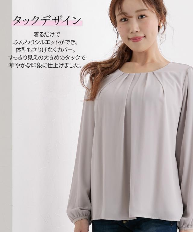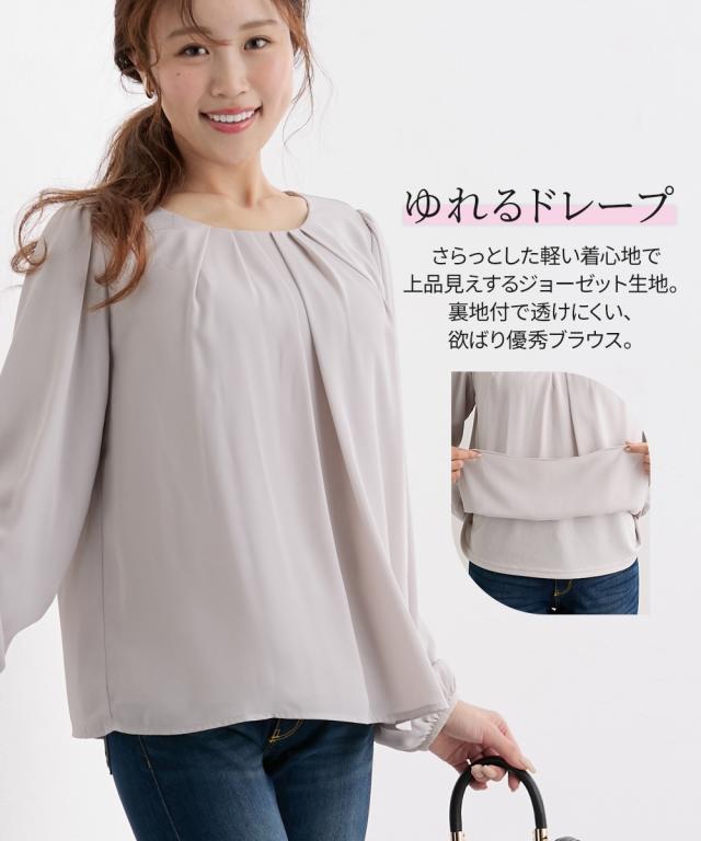 シャツ ブラウス レディース 大きい胸専用 フロントタックジョーゼット 長袖 裏地付き | LL/3L | ニッセン nissen