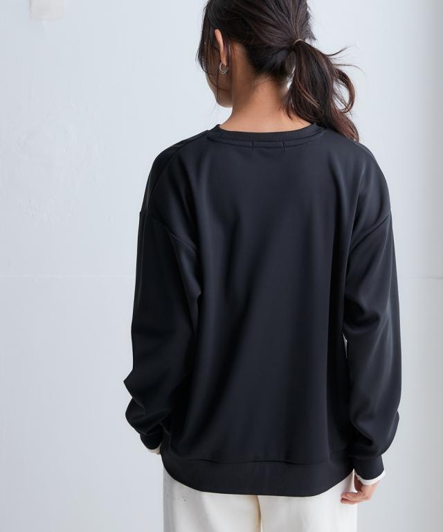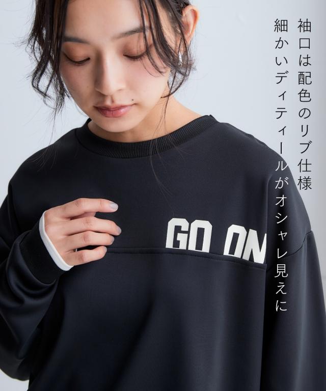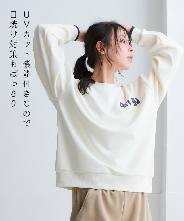 スポーツラインにオリジナルのアクティブウェアが登場! アクティブなシーンだけでなく、おしゃれ着としても着用できます。 ■デザイン 程よい厚みで透けにくい厚みです。 毛足が短いベロアなので着ぶくれしにくく、すっきり見え。 袖口は配色のリブ仕様。 胸元の切り替えとプリントはシンプルになりすぎず、一枚で様になります。 首元はへたりにくいリブ衿仕様。 ドロップショルダーで肩回りがゆったり動きやすい。 襟裏テープ付き。 ■素材 肌にあたる面は毛足の短いベロアで全体を包み込む柔らかく暖かい肌触り。 UVカット機能付きで日焼け対策もばっちり。 ジムやスポーツなどのアクティブなシーンやリラックスシーン、街中でのタウンユースコーデとしてなど幅広く着用できます。 ■コーディネート 同素材でコーディネートできます。 デニムやスカートなどお持ちのアイテムで簡単にコーディネートできます。