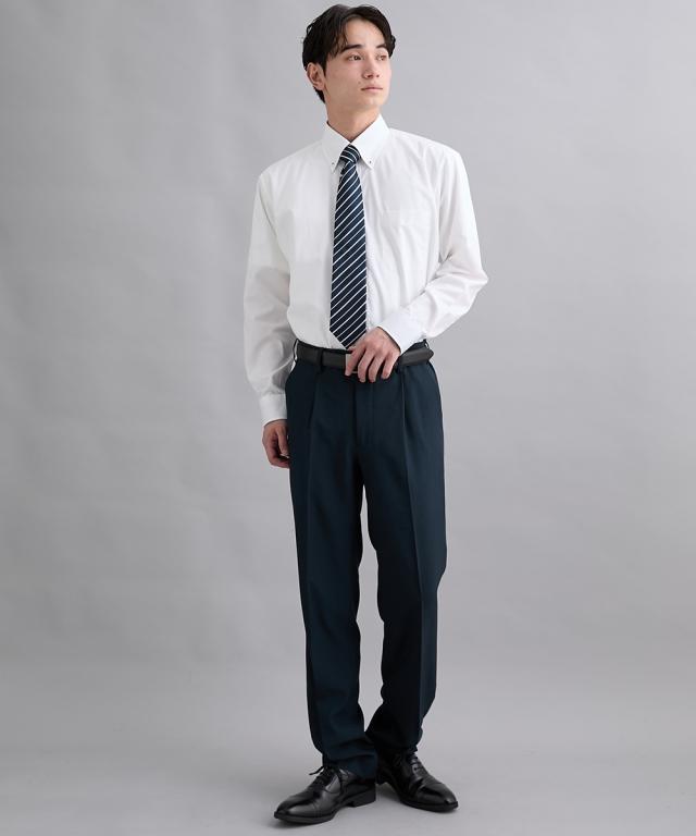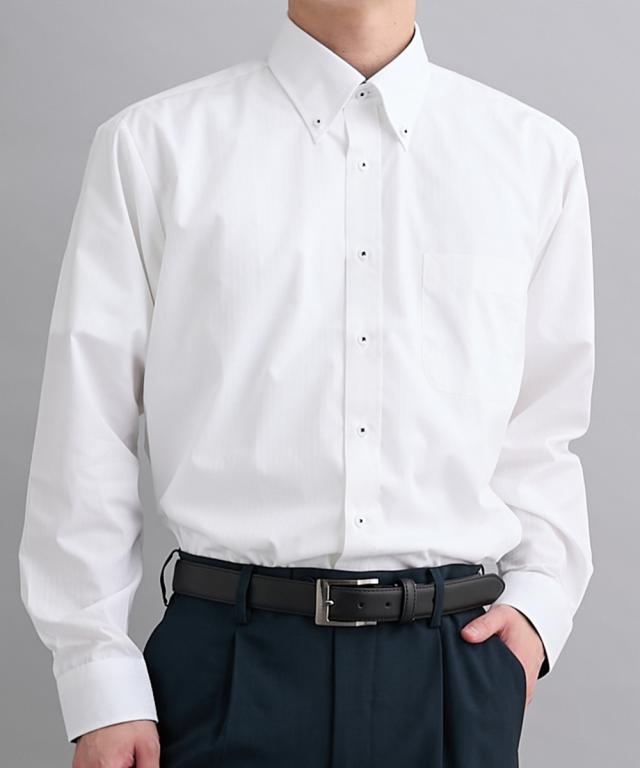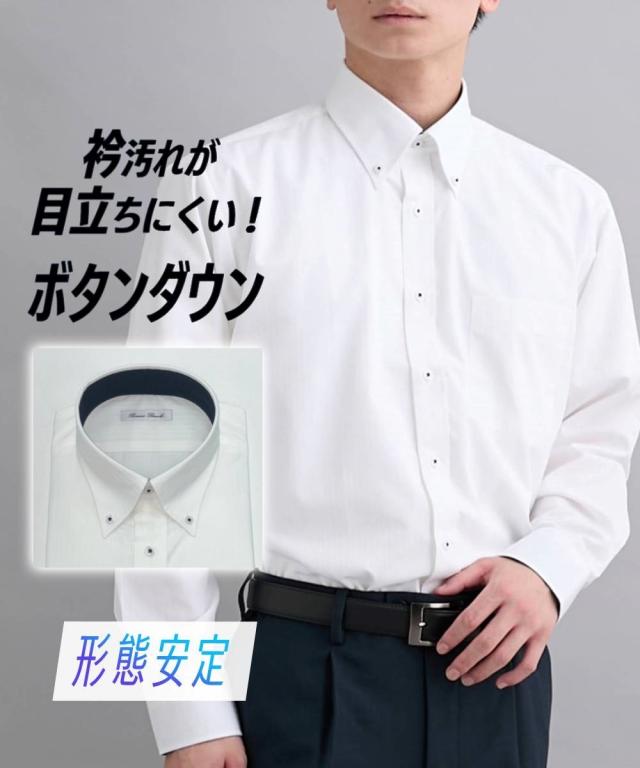 ワイシャツ メンズ 形態安定 長袖 ボタンダウンワイシャツ 汚れが目立ちにくい衿裏 袖裏配色 カッターシャツ ドレスシャツ | M/L/LL | ニッセン nissen
