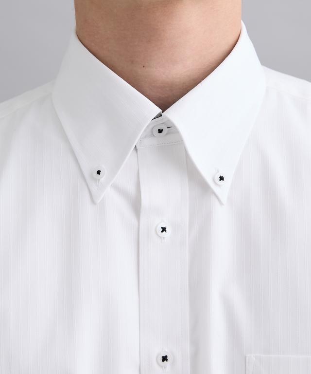 毎日のアイロン掛けが簡単なボタンダウンワイシャツ。 黄ばみ汚れがつきやすい襟裏と袖口裏が黒色配色になっており、汚れがついても目立ちにくく清潔にキープ。 大きいサイズも展開しております。(サイズ展開:M/L/LL/3L/4L/5L/6L/7L/8Lサイズ) ■デザイン ストライプのドビー織の柄がさりげなく、品を感じるデザイン。 仕事はもちろん、パーティーなどでも活躍します。 襟のおさまりがよいボタンダウン仕様。 ■素材 綿混素材のドビー織の生地を使用しております。 形態安定加工により洗濯後しわになりにくくアイロン掛けが楽ちんです。 ●スタッフ着用コメント 身長:177cm 普段のサイズ:L 着用サイズ:L コメント:普段のサイズで丁度良かったです。首の付け根から手首までの裄丈を参考にお選びください。