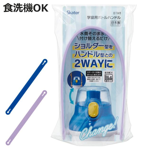 スケーター社製ショルダー付き水筒専用のボトルハンドルです。ショルダー部分を取り外し、付け替えるだけで簡単にハンドル型にチェンジ。用途やシーンに合わせてショルダー型・ハンドル型の2WAYでお使いいただけます。